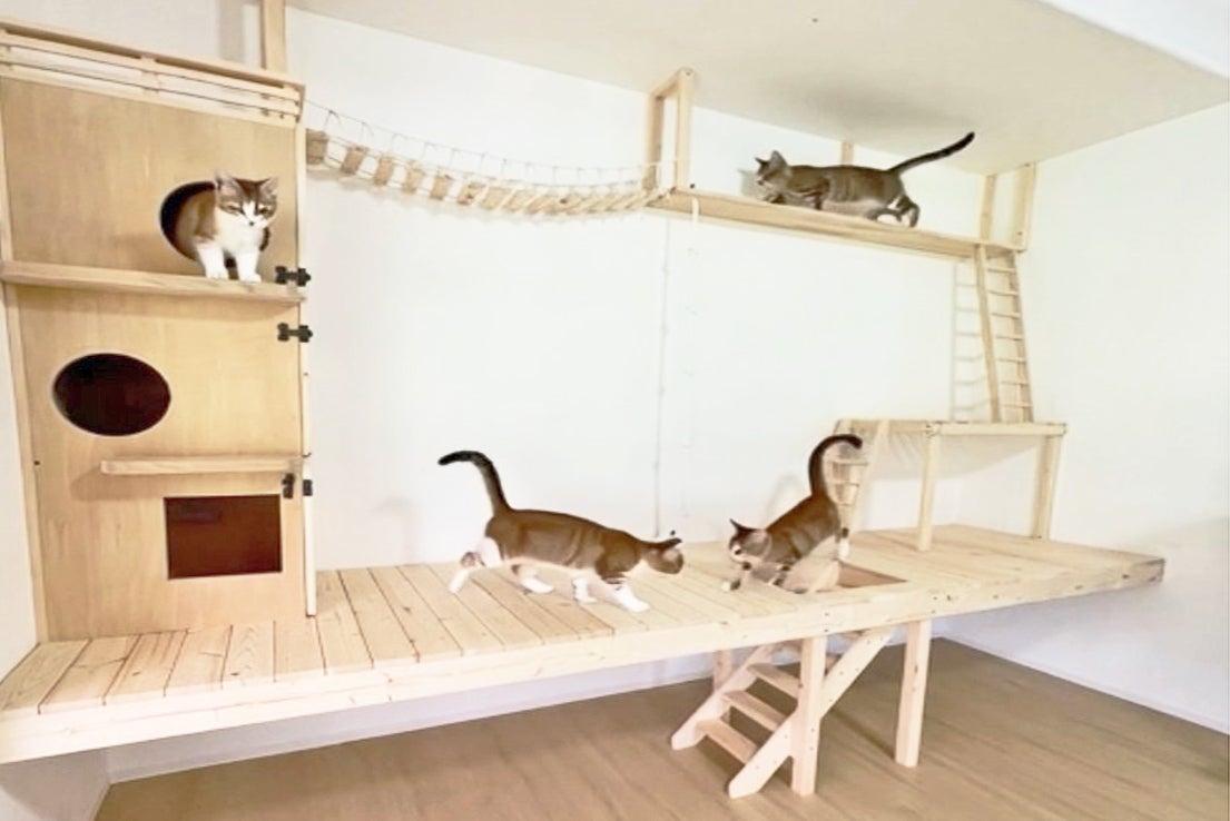 現在、犬猫ファシリティとして、猫広場と空調室(猫寝室)が完成し、猫の収容体制が整いました。これにより、地域の保健所で対象となる個体が発生した場合、保健所からの直接依頼により猫の収容を行います。改装工事は引き続き進めていますが、今後は完成済みのサービスルームへの給水設備工事、グルーミング等を行うカウンターやシンクの設置、ならびに未完成のエントランス部分の改装を予定しています。(既存建物内装は解体済みです。)今回のクラウドファンディングでは、これらの予算に対するご支援をお願いしております。
