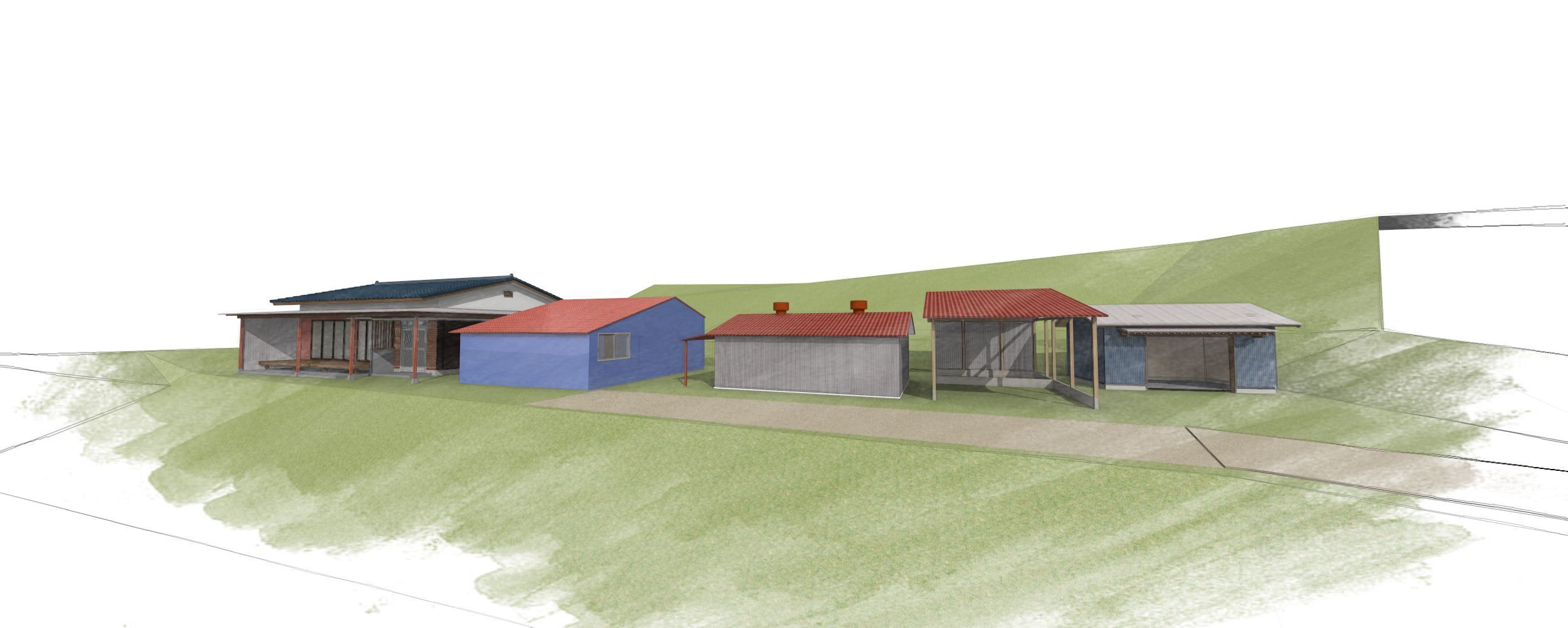 施設の現況 左側端の既存建物を改修し、猫広場、空調室(寝室)、サービスルームを設けました。