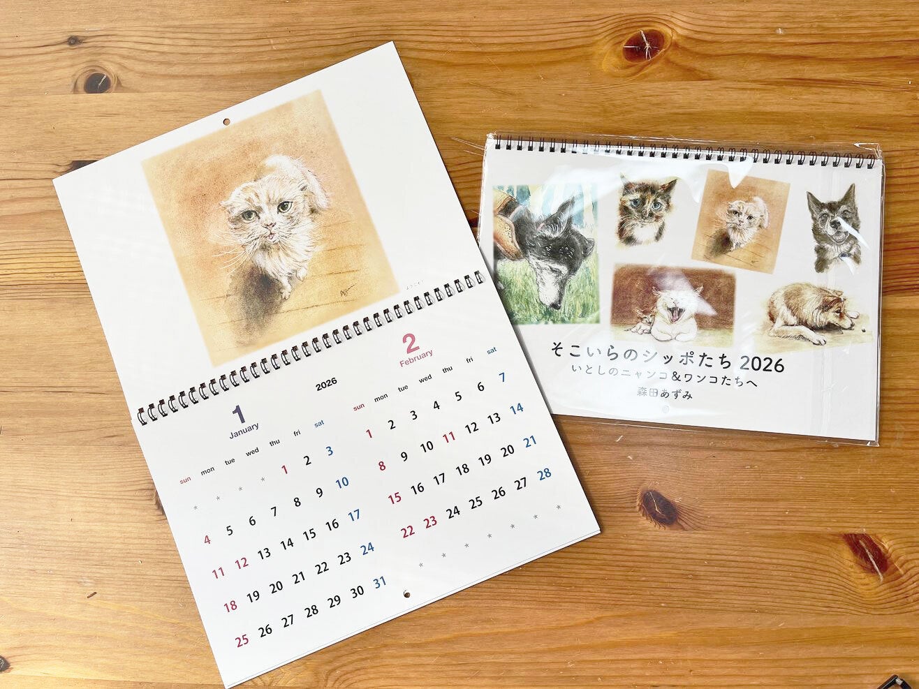 動物画家の森田あずみさんが、心温まるタッチで描く身近な犬猫たち。野良ちゃんも、保護された子も、皆が優しい眼差しで微笑むような一枚一枚に、森田さん独特の愛情がにじみ出ています。このカレンダーで、毎日の癒しをお届けします。今回は、プロジェクト支援のために森田さんが無償で贈呈くださいました。2026年を、そこいらのシッポたちに囲まれて、穏やかな一年に。ご支援いただき次第、速やかに発送いたします。どうぞ、お受け取りください。