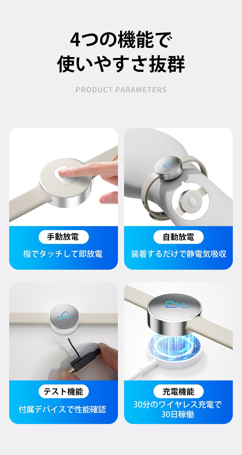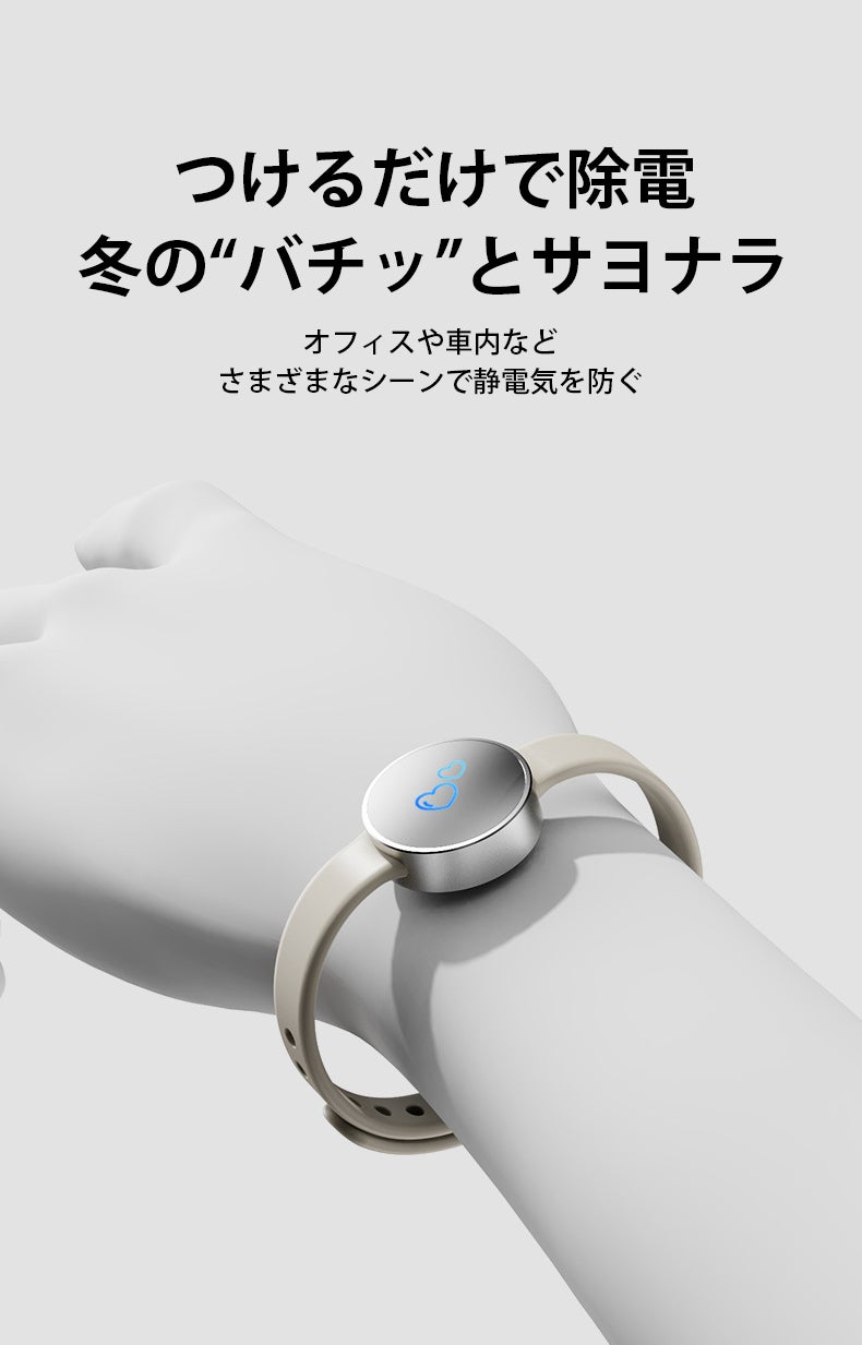 本製品は瞬時に静電気を除去できるため、金属や他人に触れても不快な静電気ショックを感じることがなく、毎日を快適に過ごせるようにサポートします。
