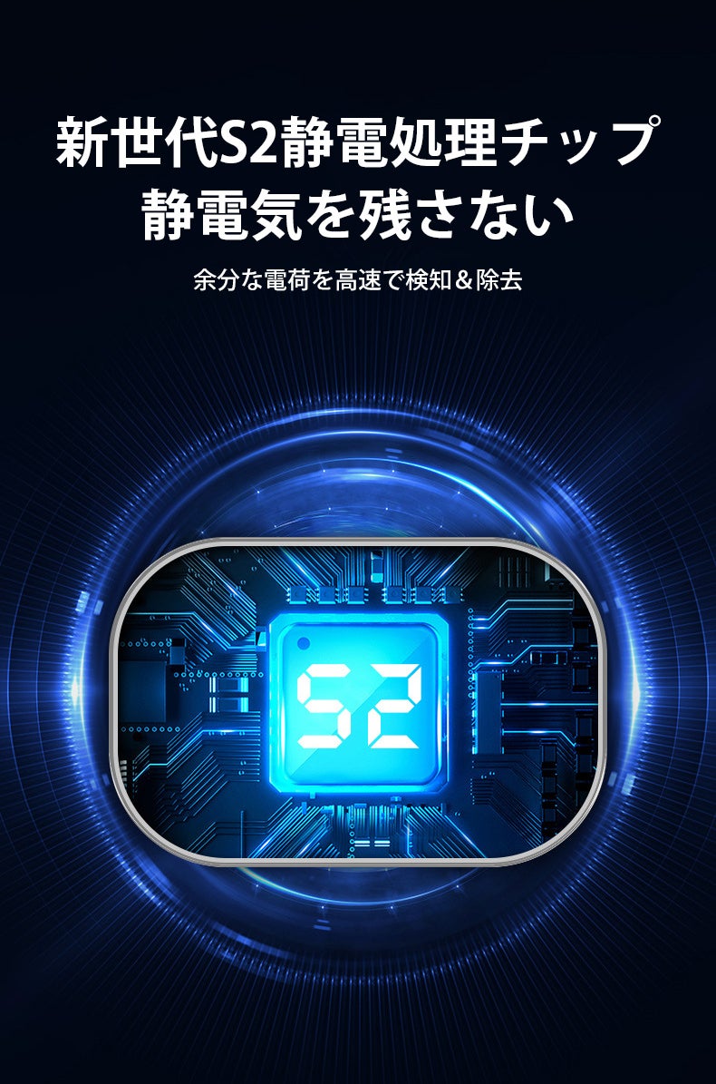 S2静電処理チップが高精度に電気をコントロールし、瞬時に静電気を除去します。