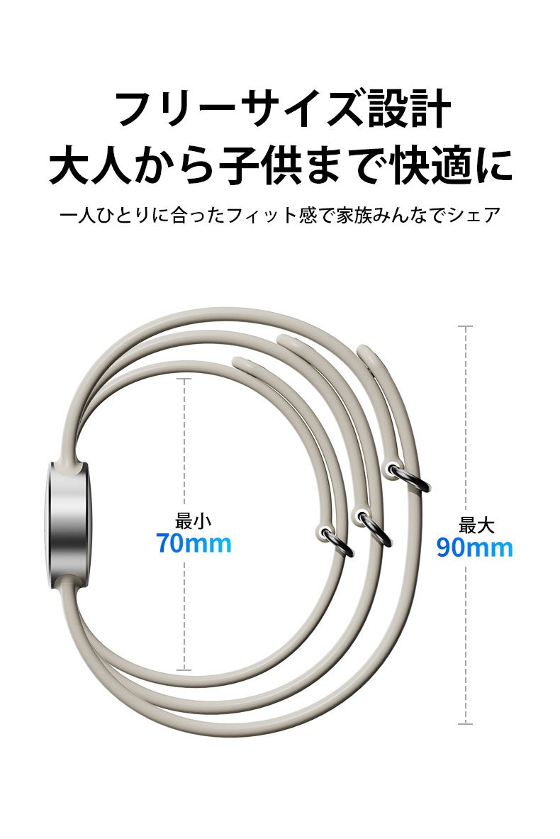 サイズ調整可能なデザインとなっているため、手首の太さに合わせてしっかりフィットする上、大人から子どもまで幅広く快適に着用することができます。