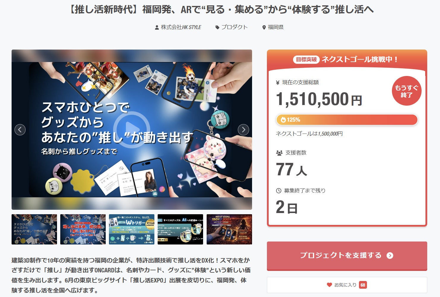 最後は高校の先輩がAR名刺にご支援くださり、