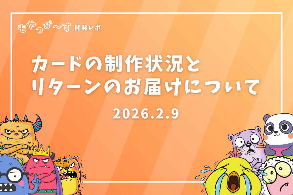 2026/02/09 15:23こんにちは!もやっぴ〜す制作チームの八木です。本日はカードの制作状況とリターンのお届け時期についてのご案内です。カード、完成しました!素敵な印刷会社さまとも出会い、私たちの想いが詰まったもやっぴ〜すがついに完成しました!実現したのは、みなさまの応援とご支援があったからこそです。改めて感謝の気持ちを伝えさせてください。本当にありがとうございます。リターンの発送時期に関して現在ですが、印刷会社さまよりサンプルを受け取り、最終調整の打ち合わせを終えたところです。印刷会社さまの制作チームが、とても丁寧にもやっぴ〜すの仕上がりを見てくださっています!一方、私たち制作チームも最後までブラッシュアップを試みていたことも重なり、当初より完成のスケジュールがずれ込んできている状況です。2026年2月9日時点で、完成は約1週間後の見込みとなっており、リターンを選んでくださった皆さまへのお手元に届くのは2月下旬ごろが想定されています。お待たせしており申し訳ありませんが、楽しみにお待ちいただければ嬉しく思います!引き続き、応援よろしくお願いいたします。もやっぴ〜す制作チーム八木自由里 もっと見る