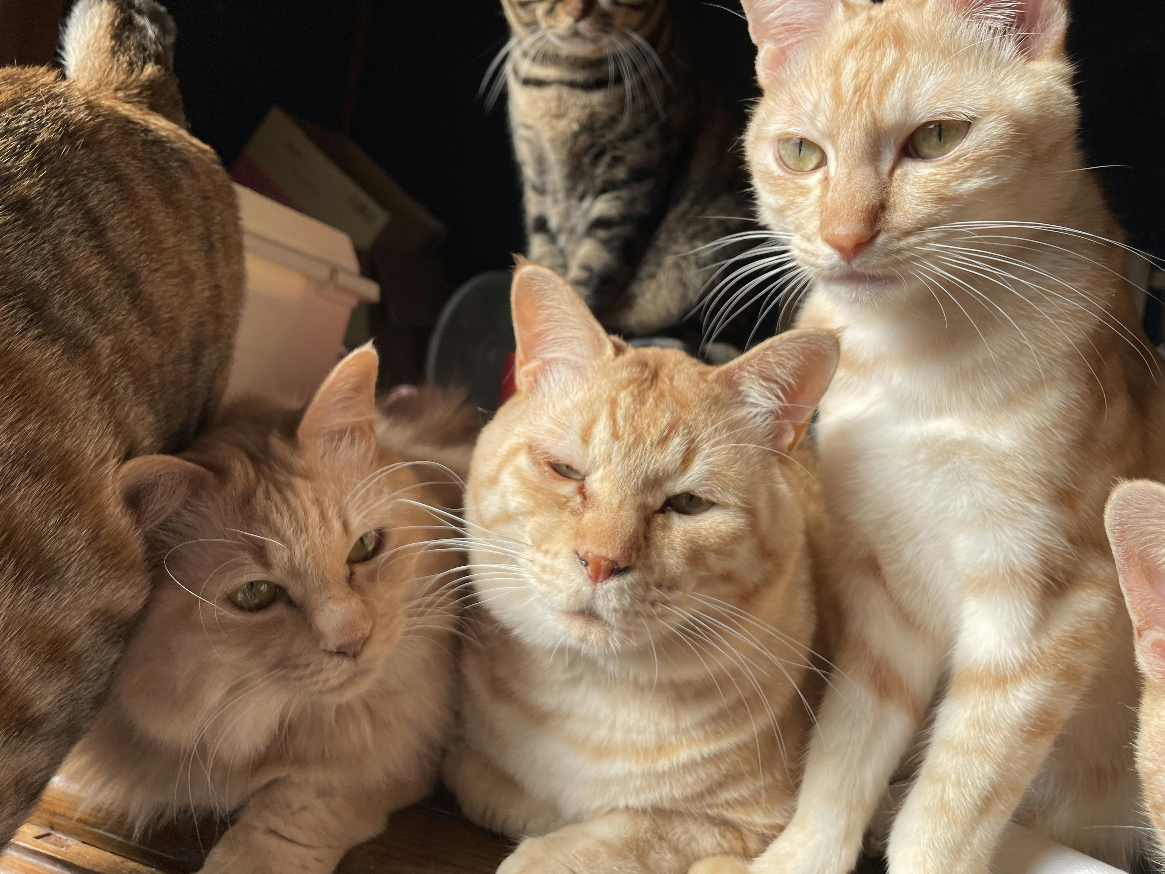 介護猫さんのごはんを狙って、まわりに集まってくる猫たち!(笑)