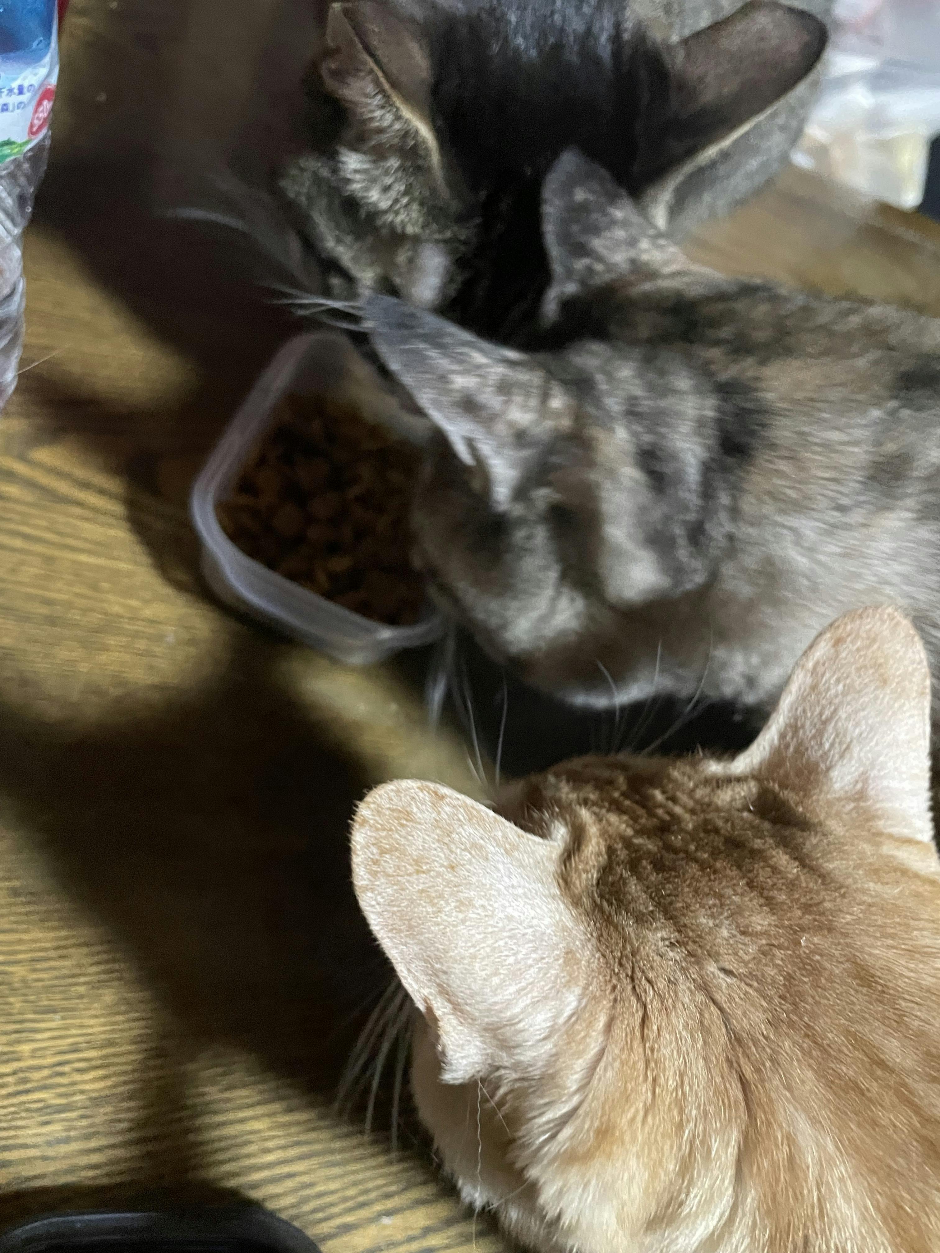 ロイカナと腎臓ケアのご飯を別で食べるおもち。