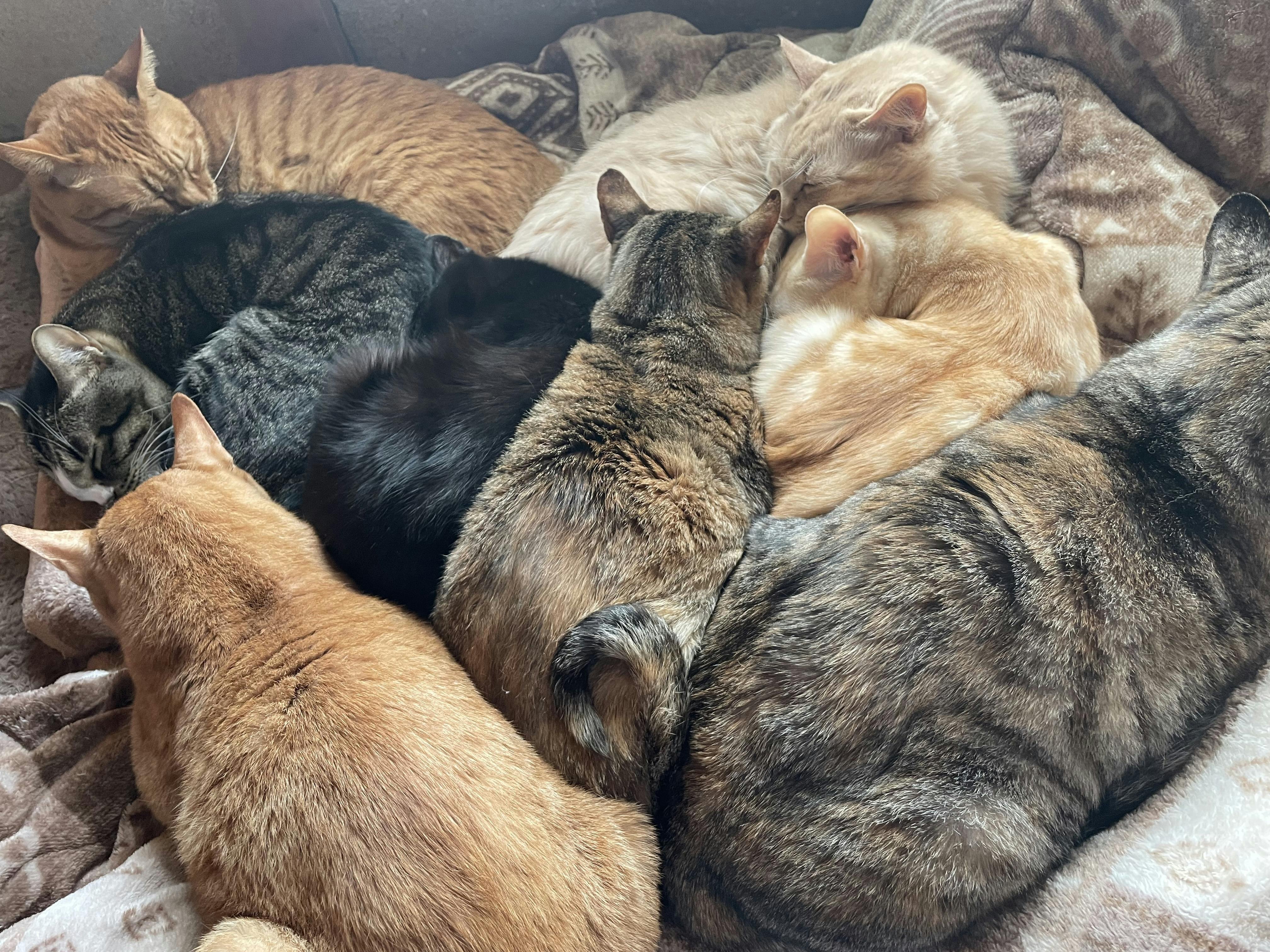 全部屋の猫さんたちと一緒に寝たら、私きっと完全に埋もれるんだろうな…なんて思いながら(笑)