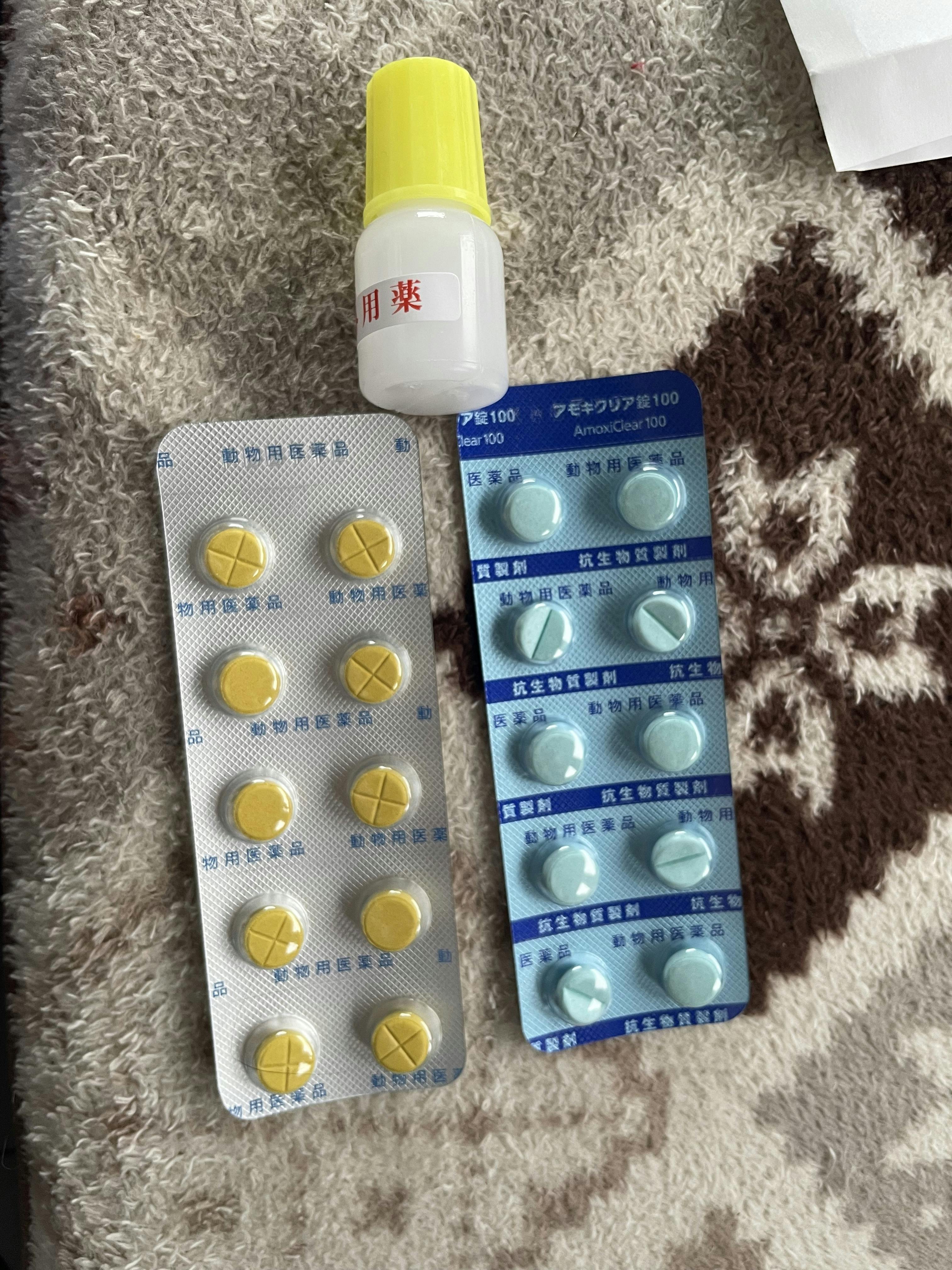 ういちゃんは、抗生剤と整腸剤を処方してもらいました。(塗り薬は介護猫さんのオムツかぶれのお薬です)