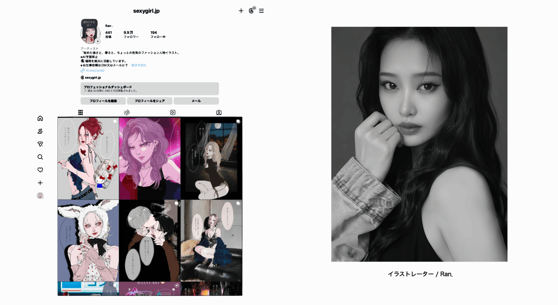 SNS総フォロワーは15万人を超え、デジタルでありながらアナログのような繊細なタッチ、そして心に刺さる一言を添えた作品が多くの人々、特にZ世代の若い女性たちから共感を集めています。