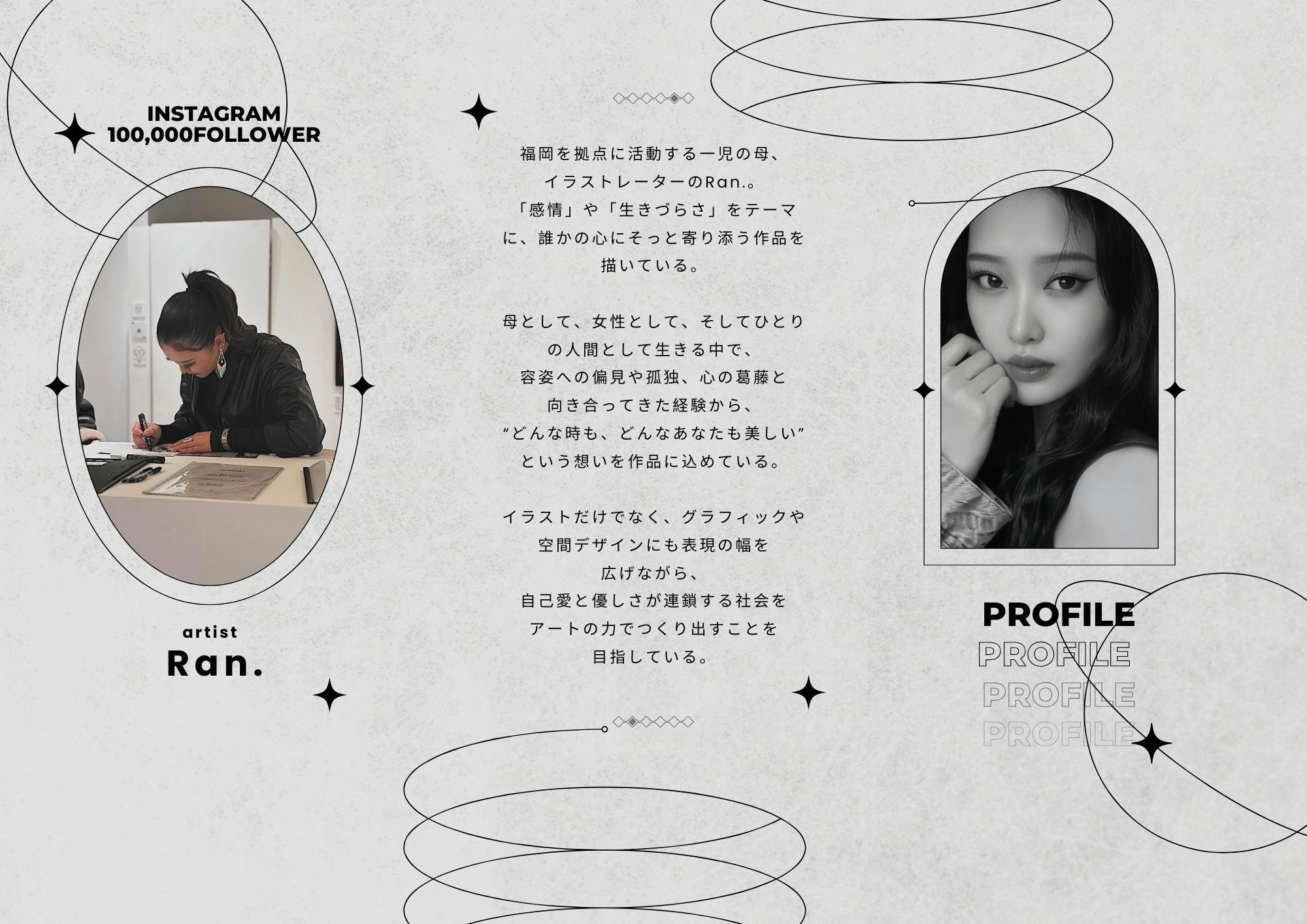 今回の個展では、現代を生きる若者として、時にシングルマザーとして、そして1人の女性として。これからも、社会の中で生きづらさを感じる人たちが、自分を愛し、笑顔を取り戻せるような世界を、作品を通じて広げていきたいと思っています。