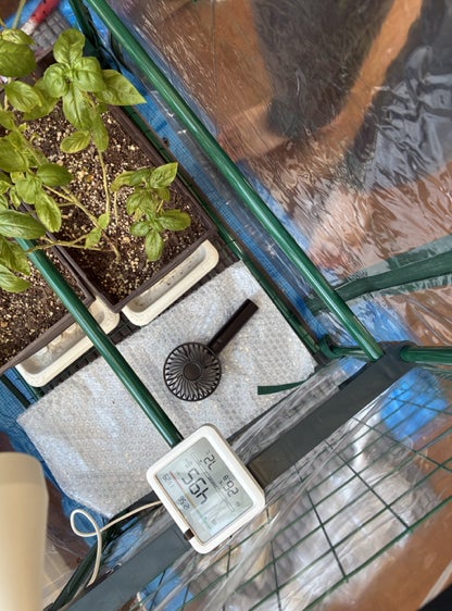 これまで僕は、バジル栽培を通して様々な実験を行ってきました。自宅に温室環境を作り、LEDライトやホットカーペットを自動制御することで、冬を越す栽培実験に挑戦しました。また、SwithBotを使って温度、湿度、CO2濃度などのデータを取得し、Pythonで、「温湿度計データ可視化アプリ」を作成しました。これによりデータを数値として取得し、分析できることがわかりました。