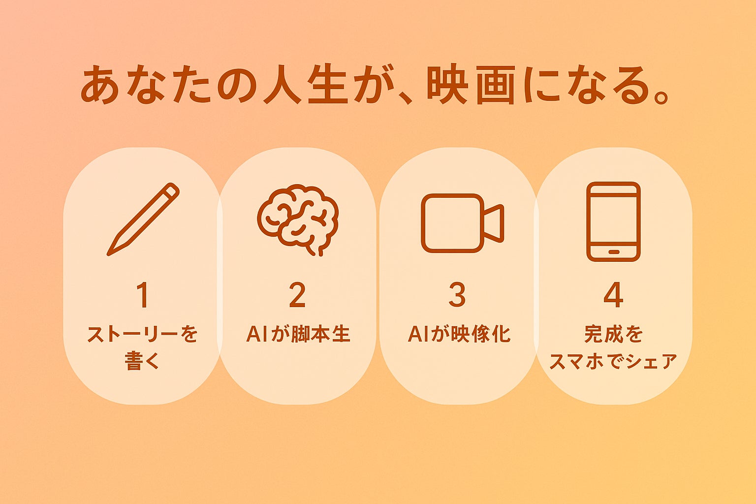 こんにちは。 私たちは、AIを活用して「個人の物語を映像化する」プロジェクトを立ち上げました。 SNSでは誰もが発信者になれる時代。 けれど「自分の人生をドラマとして残す」体験は、まだほとんどありません。 このプロジェクトでは、AI脚本・AI映像技術を使って、 あなたの人生の1ページを1分間の映画として制作します。