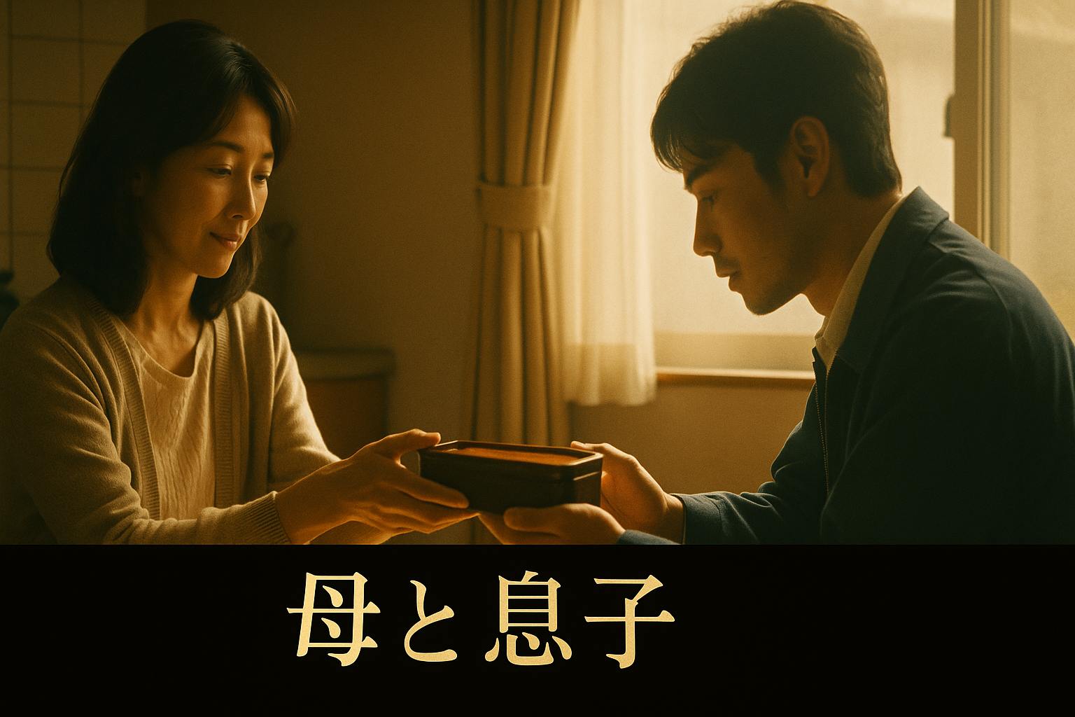「母と息子」 息子が旅立つ朝。母が差し出したお弁当の包み。 『行ってらっしゃい』の一言が、今も耳に残っている。 — AIが描く“1分の母子ドラマ”。