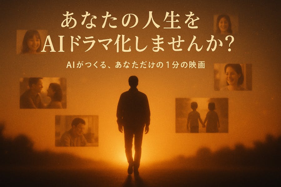 『あなたの人生をAIドラマ化しませんか?』たった1分で、あなたの物語が映画になる。AIがあなたの人生を“ドラマ”として再現します。これは、最新のAIを活用して「個人の物語を映像化する」プロジェクトです。