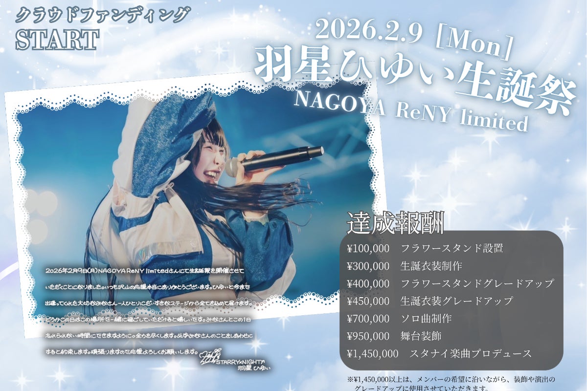 2026年2月9日に名古屋NAGOYA ReNY limitedで開催されるアイドル「羽星ひゆい」の生誕祭です。今回は、彼女の生誕祭を成功させるために、彼女を応援する全てのファンの力を集結させたいと考えています。