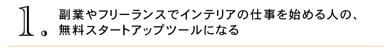 ❶ 副業やフリーランスでインテリアの仕事を始める人の無料スタートアップツールになる