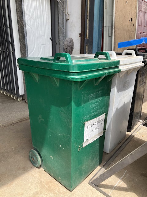まずはルサカ郊外でプラスチック製・ローラー付きの24Lゴミ箱をゲット。ブリジー会長が見つけたセール時期を狙い、1つあたり約4,000円引きで入手することができました。