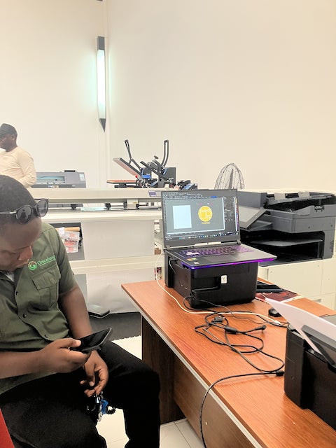 ザンビアでは珍しい業務用印刷機を使用し、クラブメンバーのちあこがデザインしたロゴを印刷。