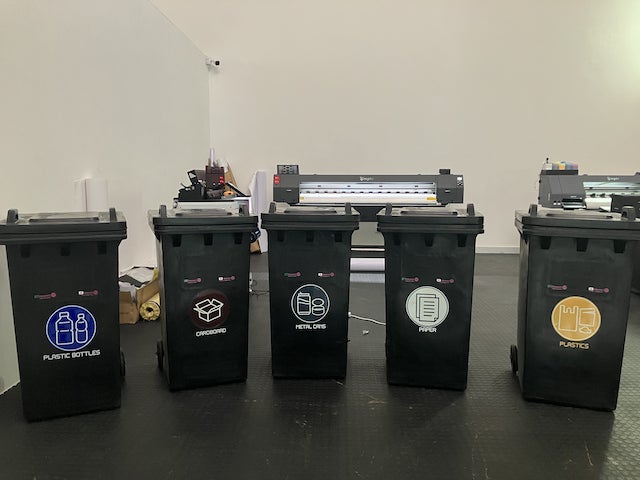 何度も貼り直しを重ね(約3時間)、ようやく分別用ゴミ箱一式が完成しました。