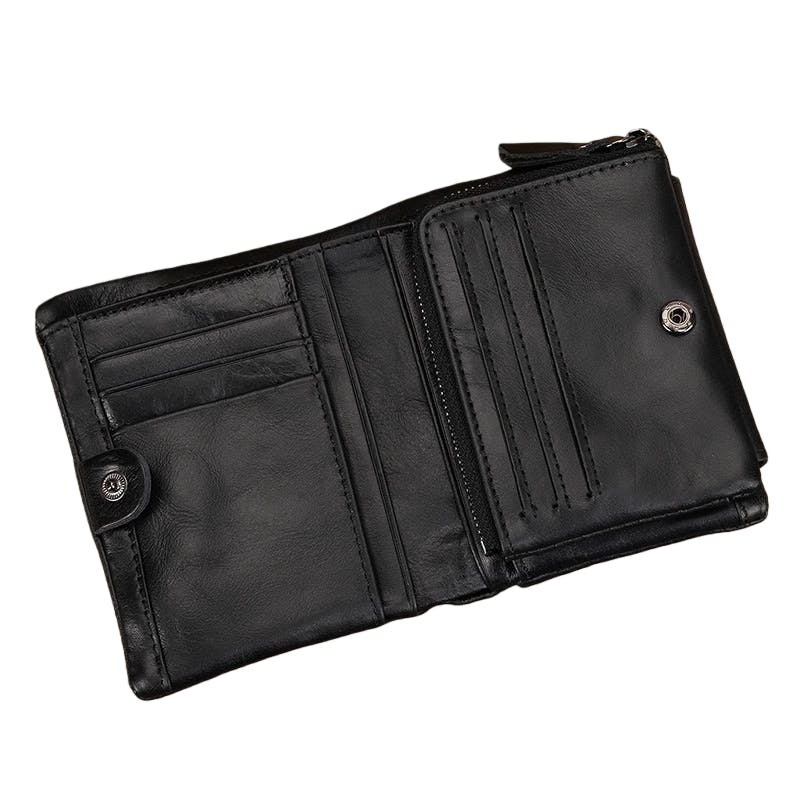 支払い時にモタつかない。大きく開く三つ折り構造で、中身が一目で見えるからストレスゼロ。