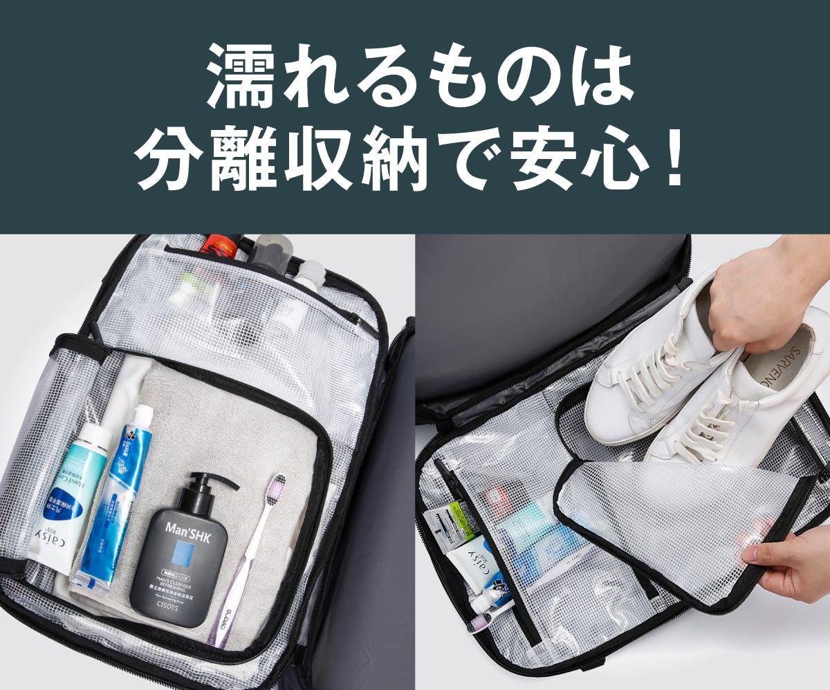旅行・出張・ジム・日帰り外出など、さまざまな場面で荷物管理がグッと楽になります。