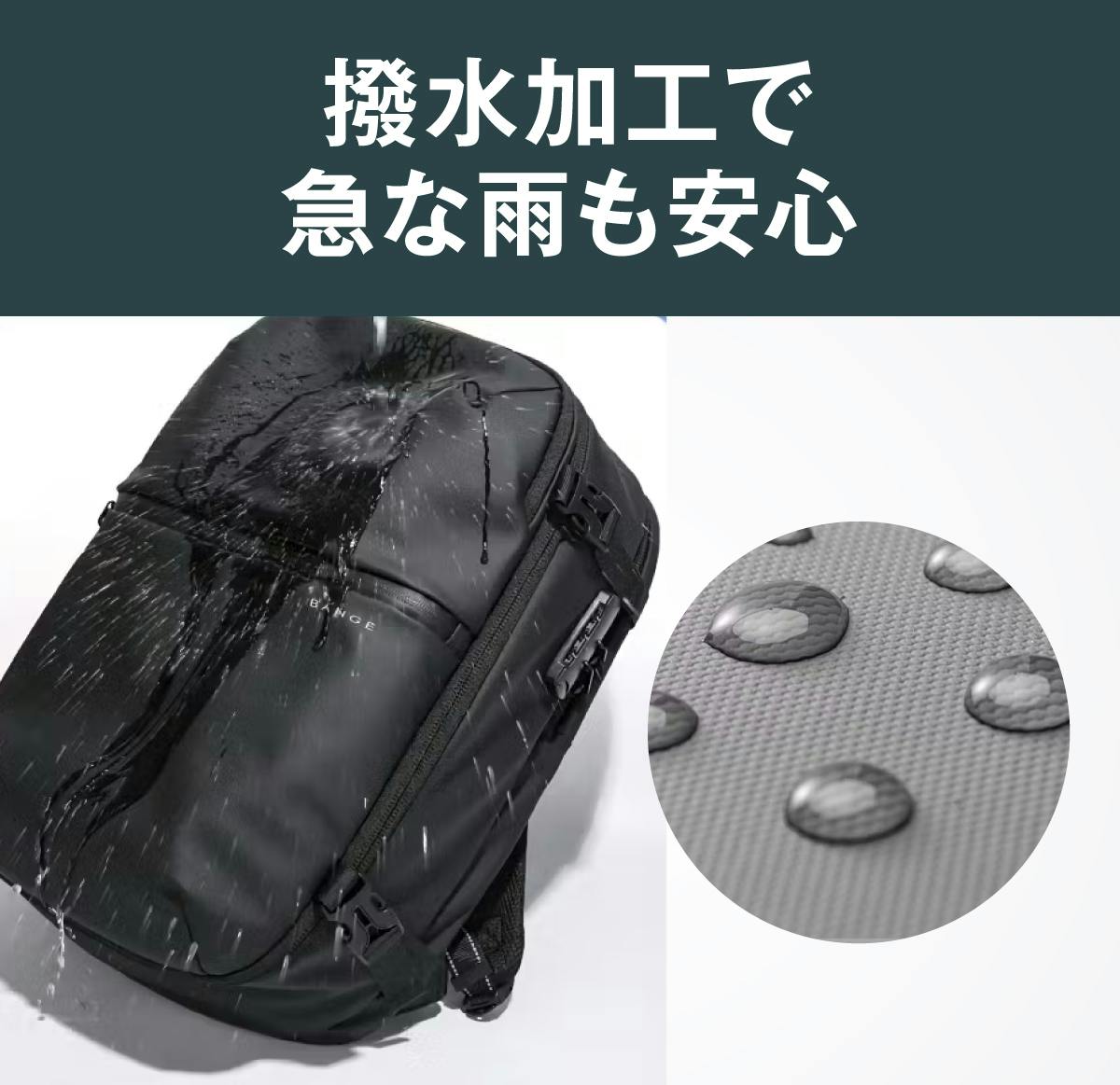 急な雨や悪天候な時でも、しっかり撥水してくれるので傘がなくても荷物が濡れることもなく安心。