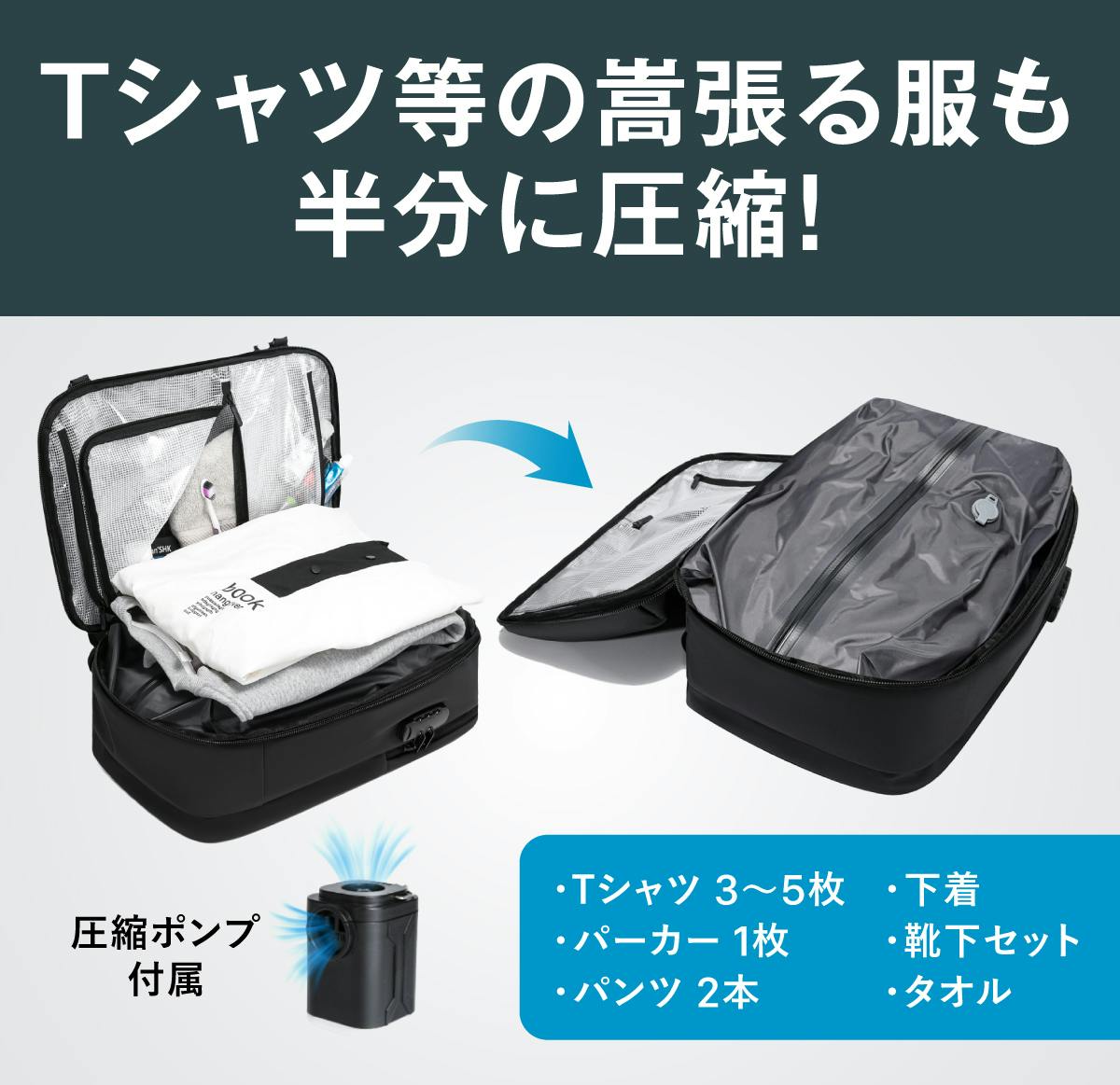 圧縮前のかさばる衣類が…圧縮後はこのサイズに!