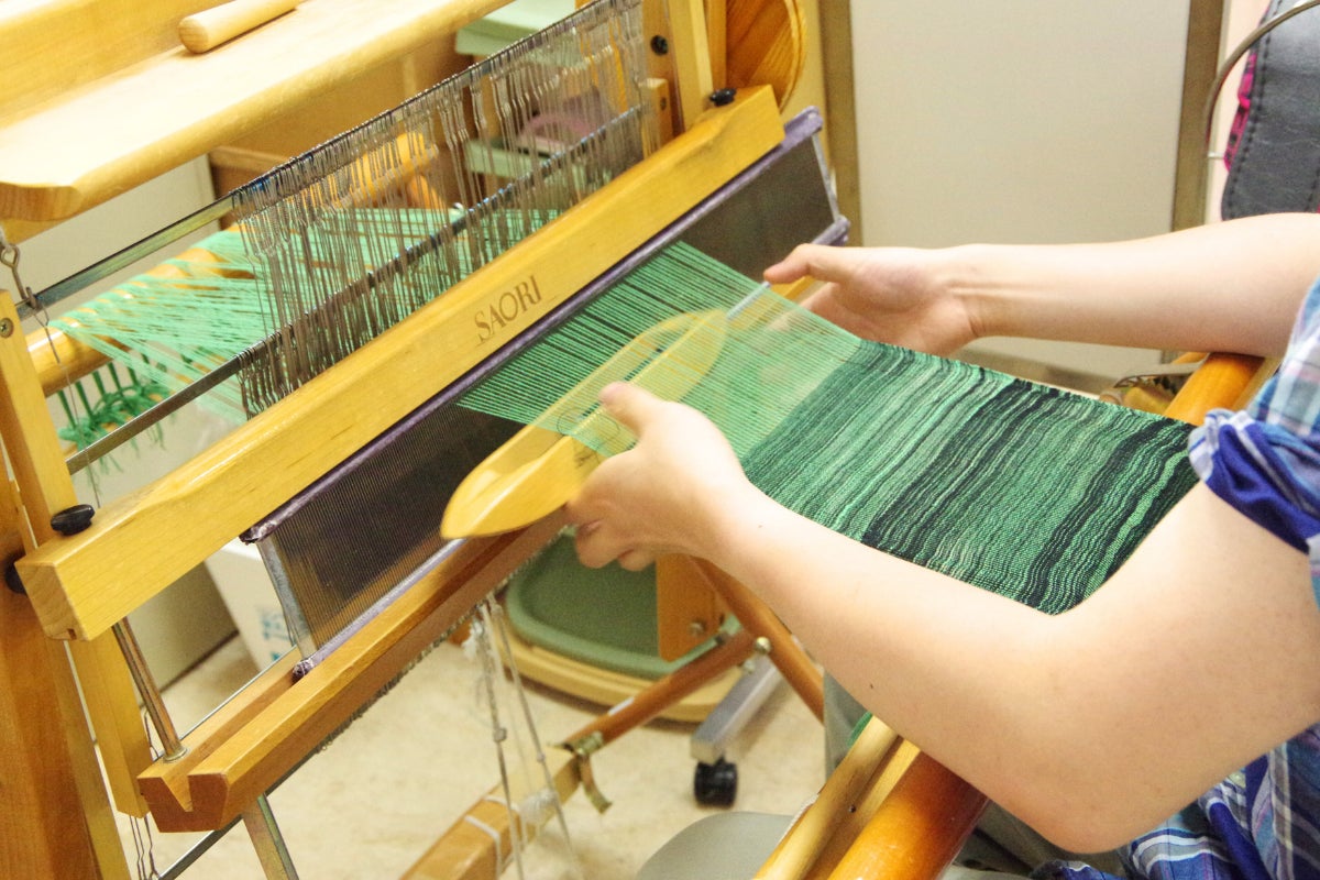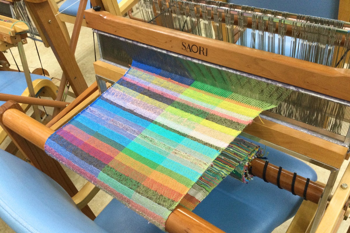 工房すぴかでは「さをり織り」という織り方で、糸から布を織っています。さをり織りが目指すのは、機械で織られるような均一な布ではなく、人間が本来持って生まれた感性で織られる布。