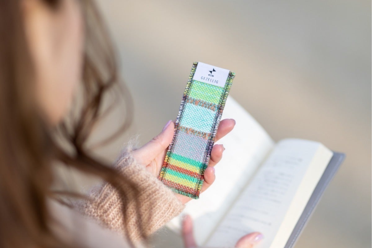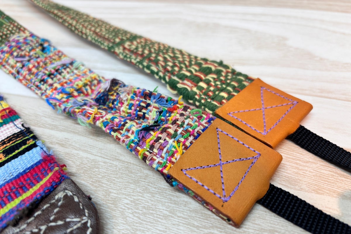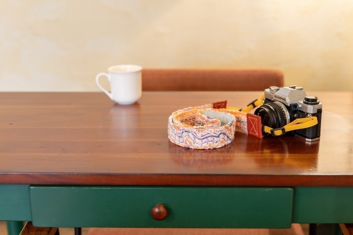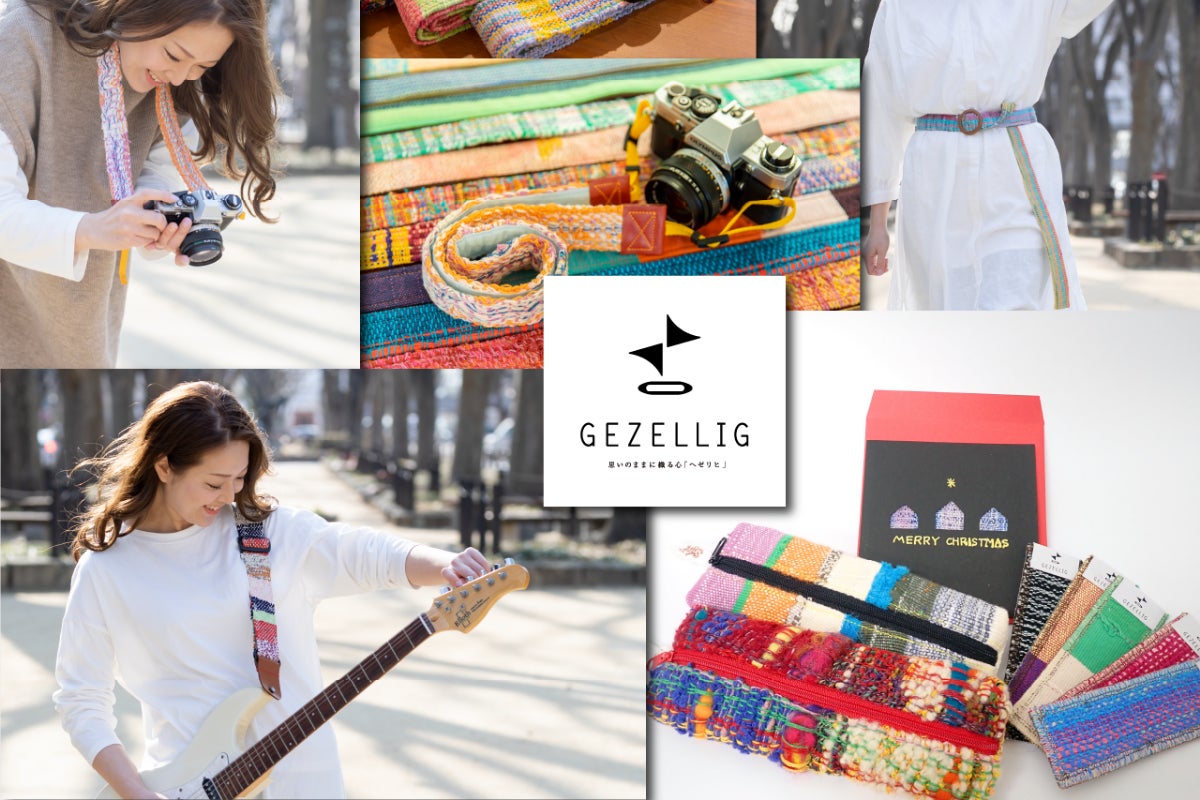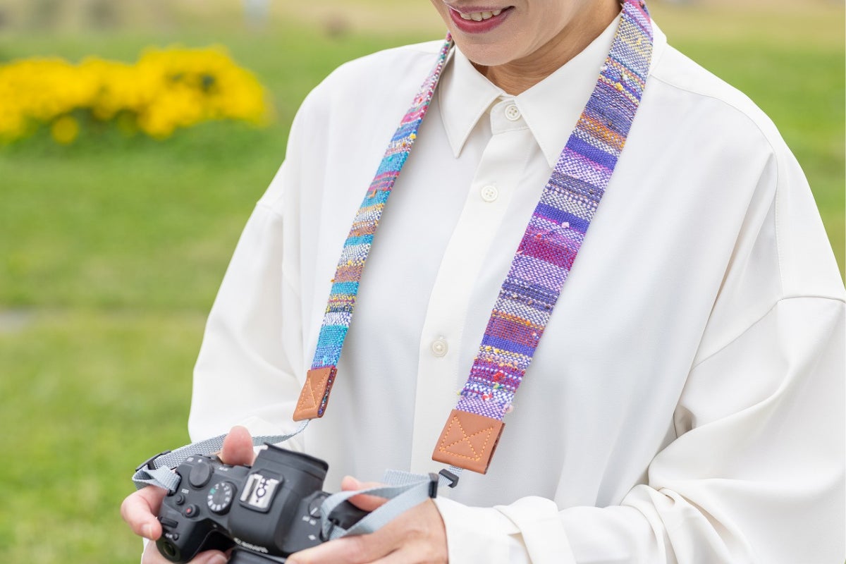 ここで、私たちの代表作を一つご紹介します。手織りの表情と本革の温もりを組み合わせた「GEZELLIG(ヘゼリヒ)カメラストラップ」です。