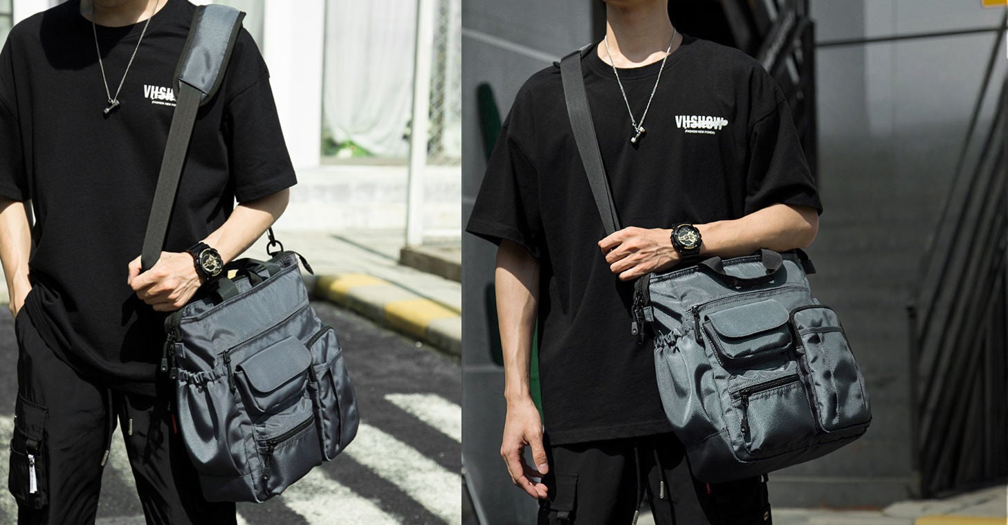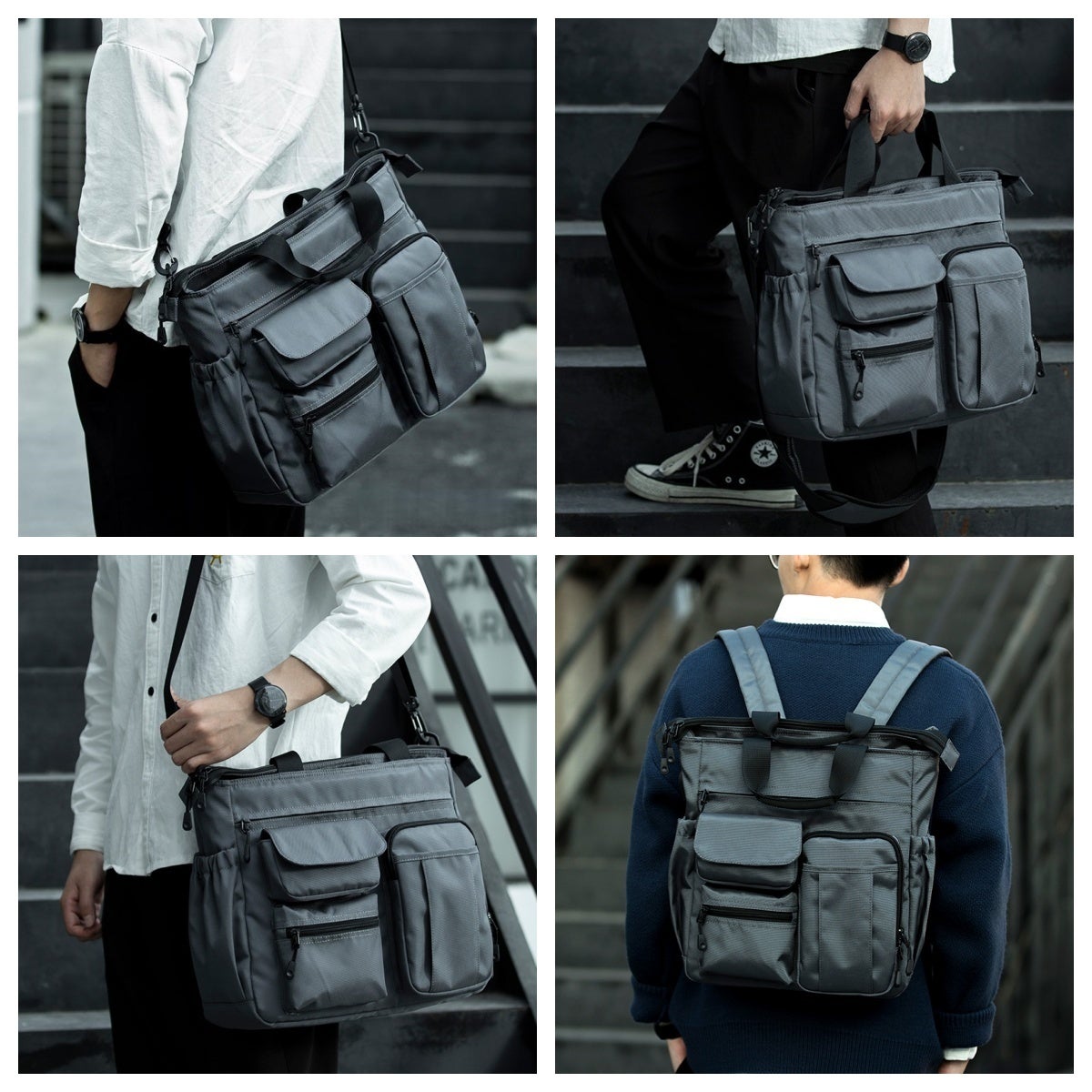 手提げ/肩掛け/リュック の3スタイルを一瞬で切り替え可能。