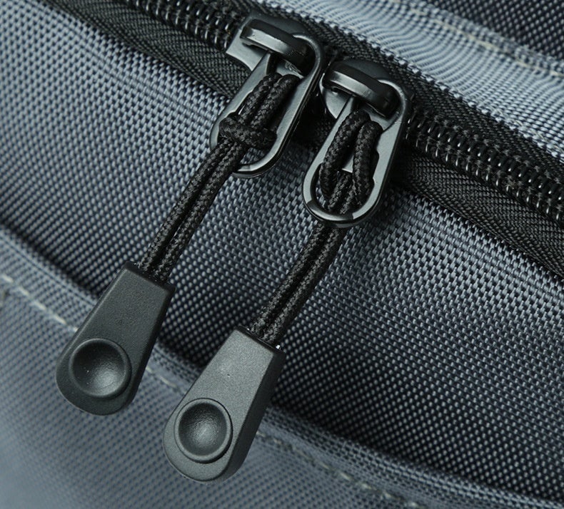 高品質の樹脂ファスナーに、ロング編み込みストラップを組み合わせています。