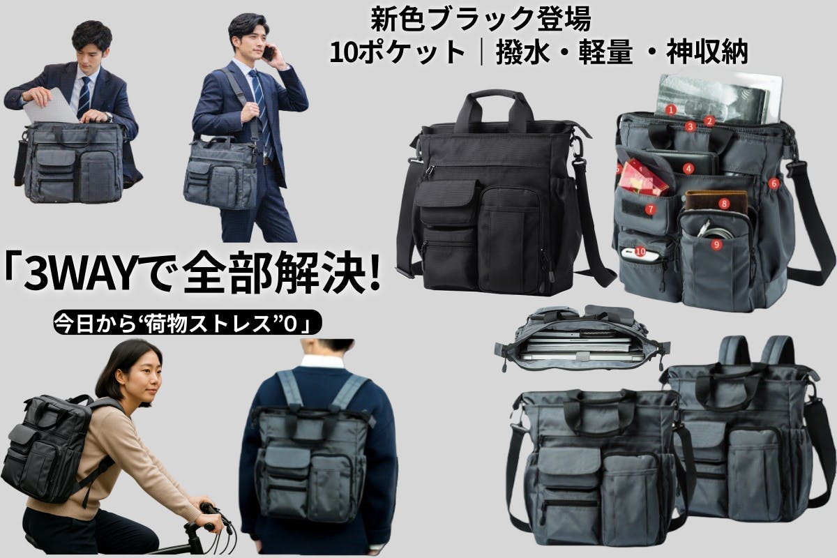 授業・通勤・旅行・カフェ作業・子育てまで全部対応。3WAYで使えるから、どんな服装にも合わせやすい。10ポケットの神収納で、荷物迷子ゼロ。季節問わず“毎日使うメインバッグ”に。