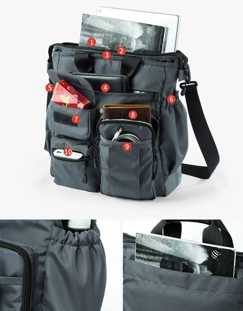 前面+側面+背面+内部まで、計10ポケット構造で小物の整理が圧倒的にラク。