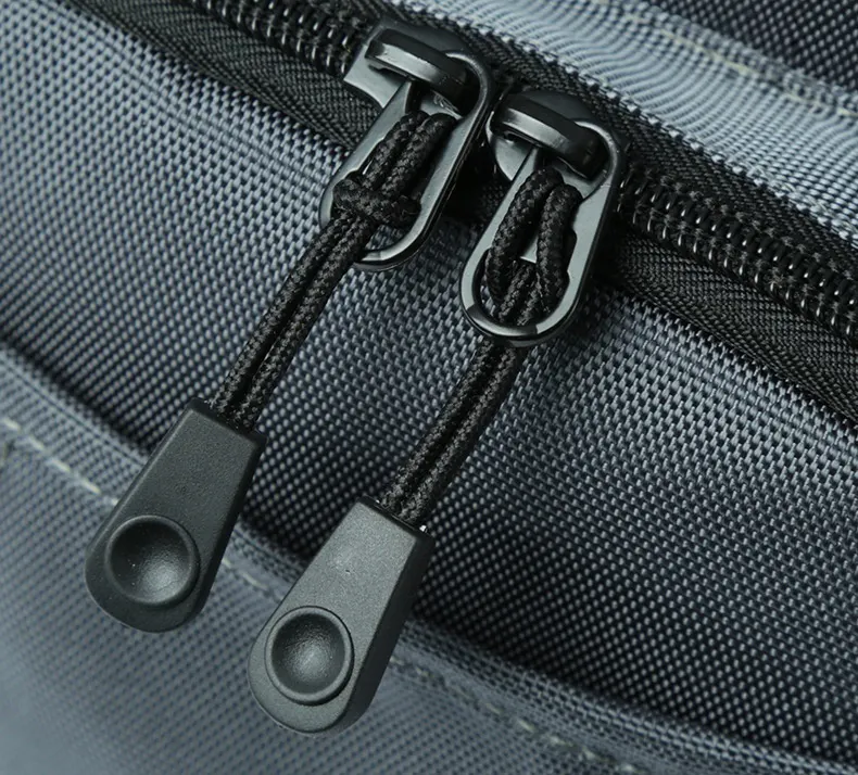 高品質の樹脂ファスナーに、ロング編み込みストラップを組み合わせています。