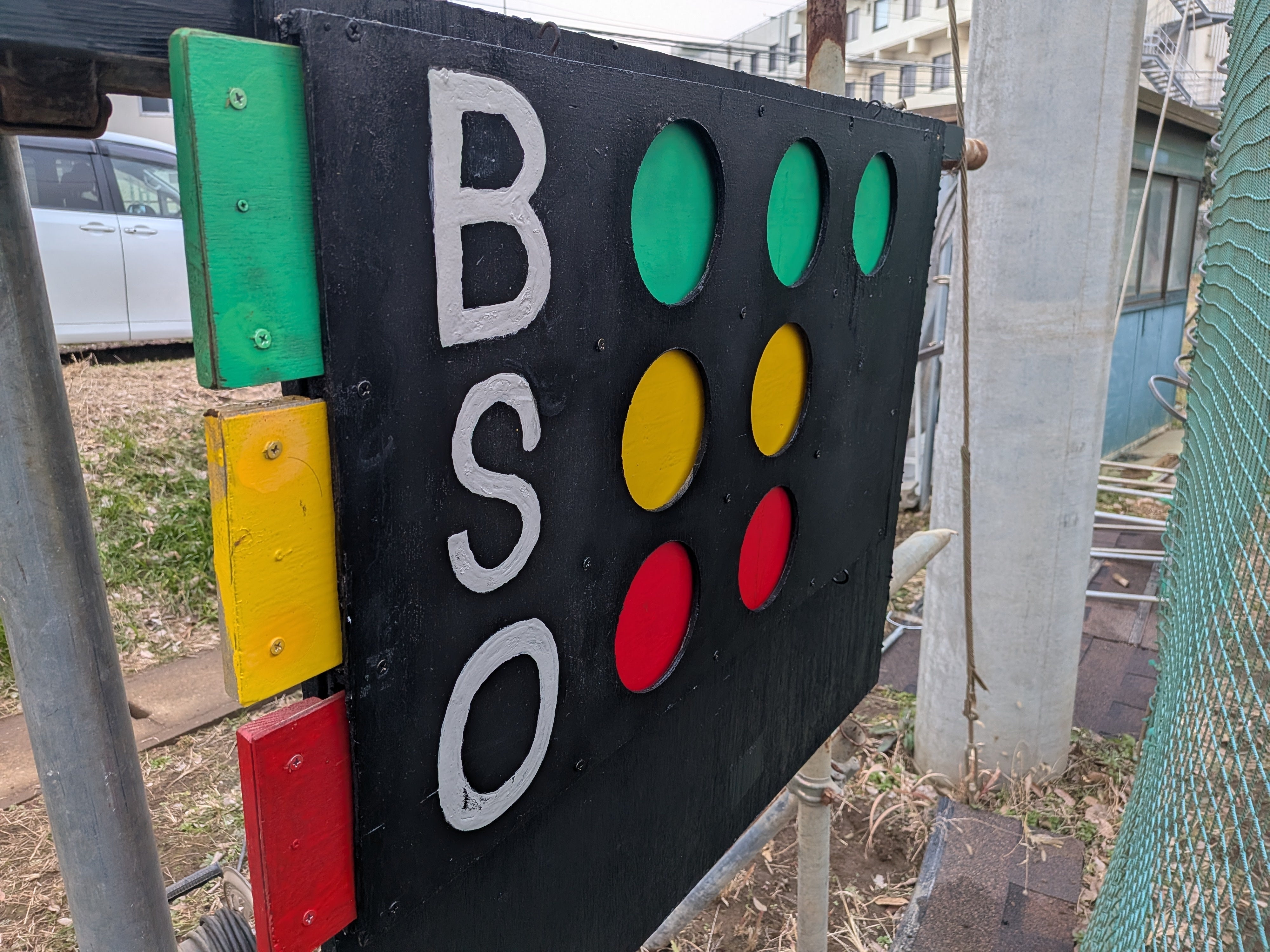 こんばんは。白井高校野球グランドで試合に必要なSBOボードを修理して取付ました!明日でグランドも終了します。や