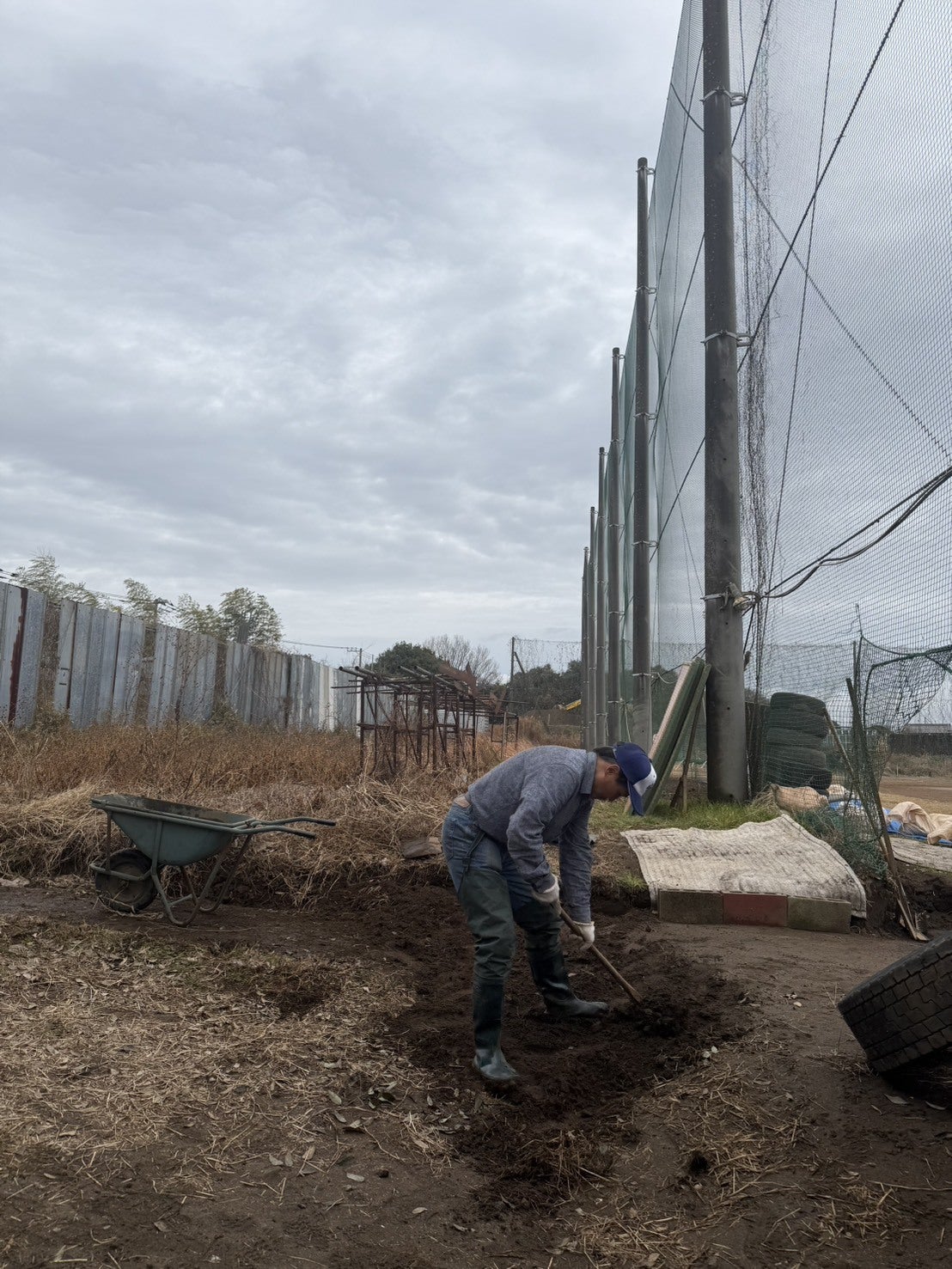 本日はバッティングマシンなどの通り道を広げる作業です。土がかなり重いですけっこう土を運びました。