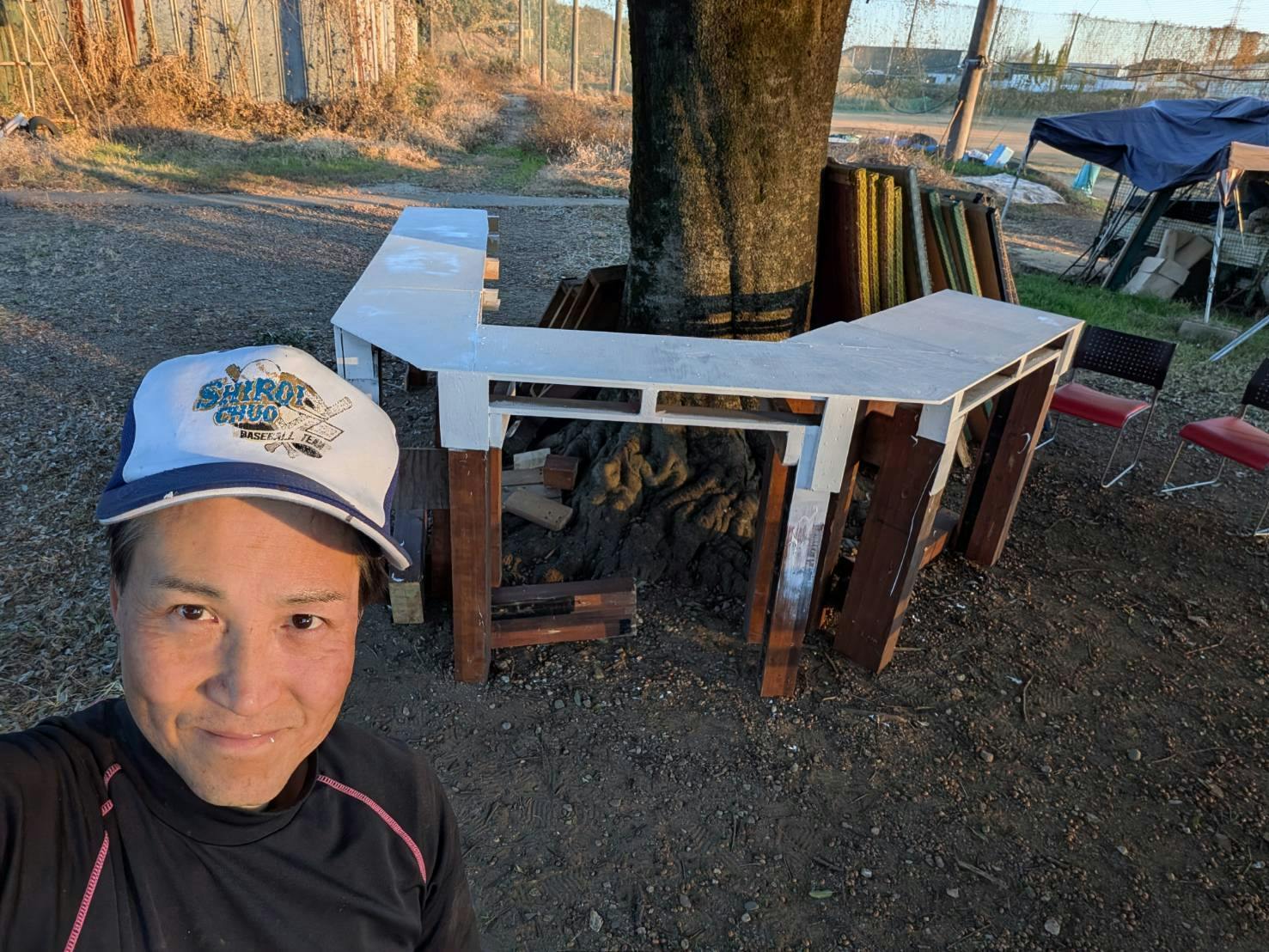 朝一番にお墓参りしてそのあと白井高校野球グラウンドでテーブルを塗装しました。ビフォー写真アフター写真きれいにできました!気持ちよく使ってくださると良いですね。写真ですとわかりづらいですが、内野より15センチほど高くなっているので削りました。かなり地面が硬く難航しましたがどうにかこの範囲は良い感じです。