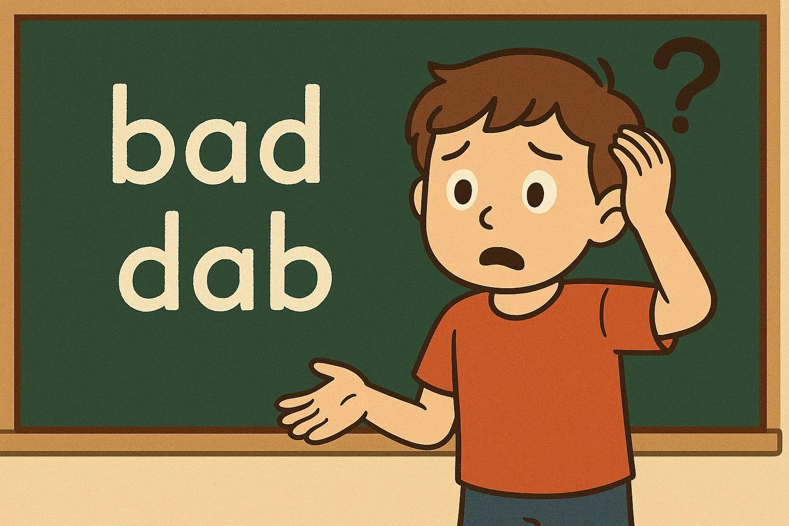 • who と how、tea と eat など、同じ文字から成る語を読みまちがえる