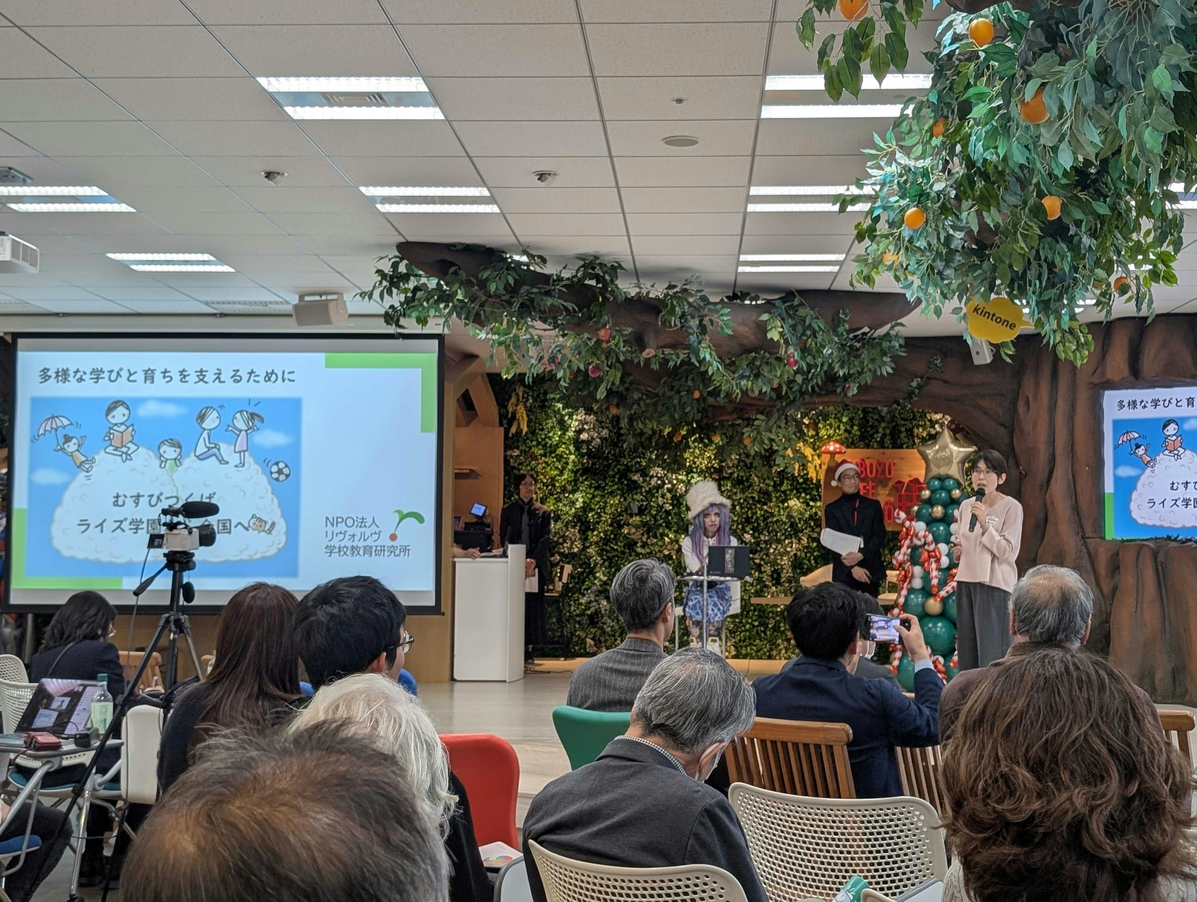 「多様な学びと育ちを支えるために~むすびつくばライズ学園から全国へ~」と題し、ライズ学園の活動と、新たに取り組んでいる ライズぷらす についてプレゼンしました!