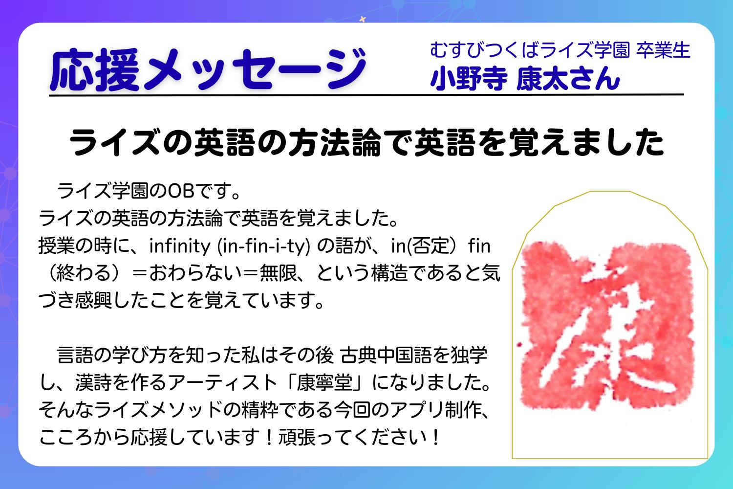 康寧堂さんから、応援メッセージもいただきました!