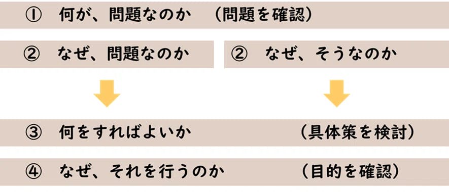困ったことがあった場合、「何(What)?」「なぜ(Why)?」を考えながら、スタッフみんなで考えます。