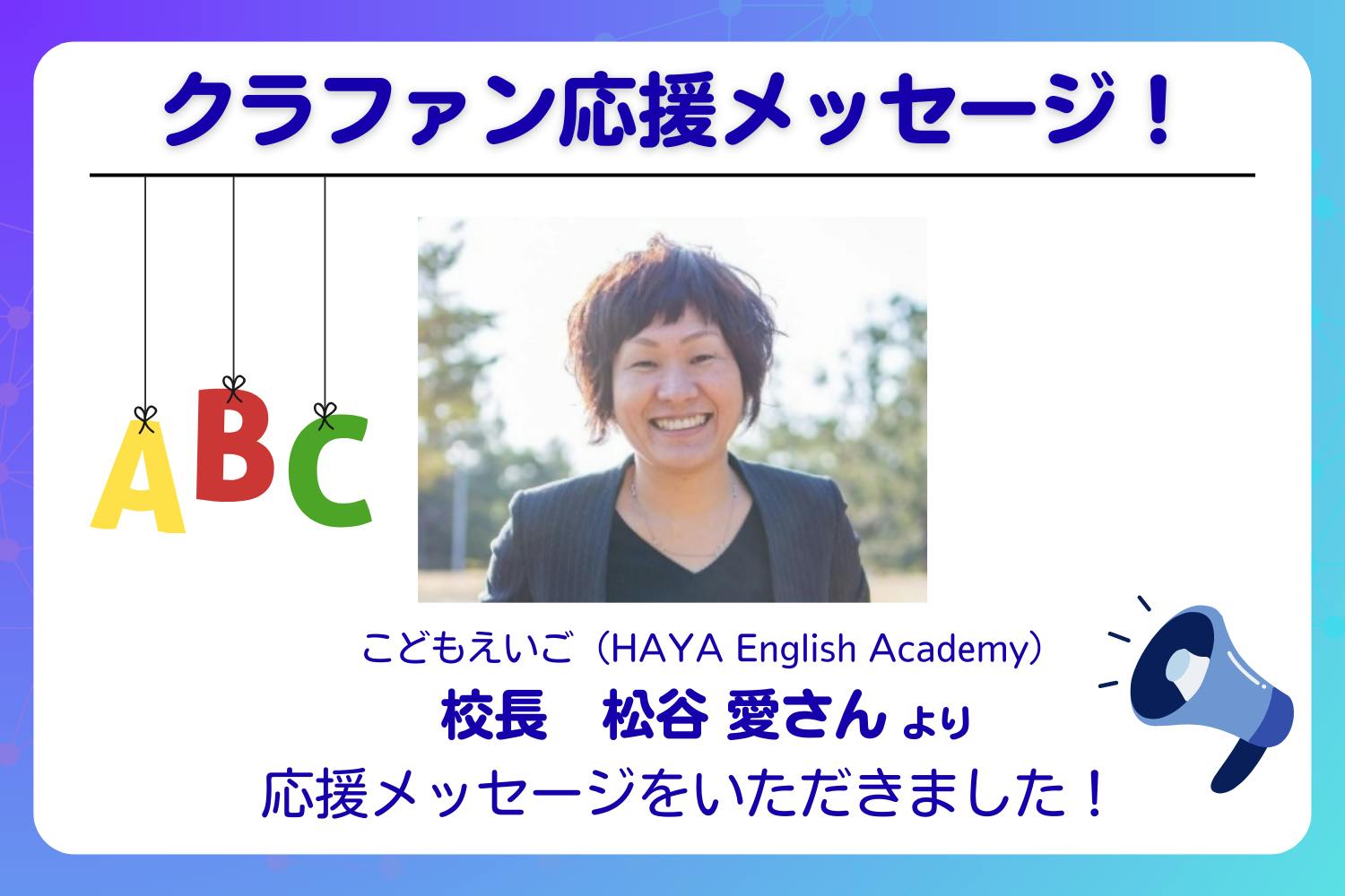 こどもえいご(HAYA English Academy)校長・松谷 愛さんからの応援メッセージをご紹介します。