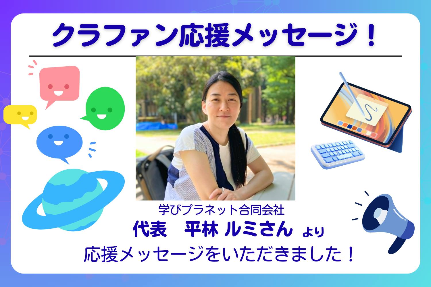 今回は、学びプラネット合同会社 代表 平林ルミさんの応援コメントをご紹介します。