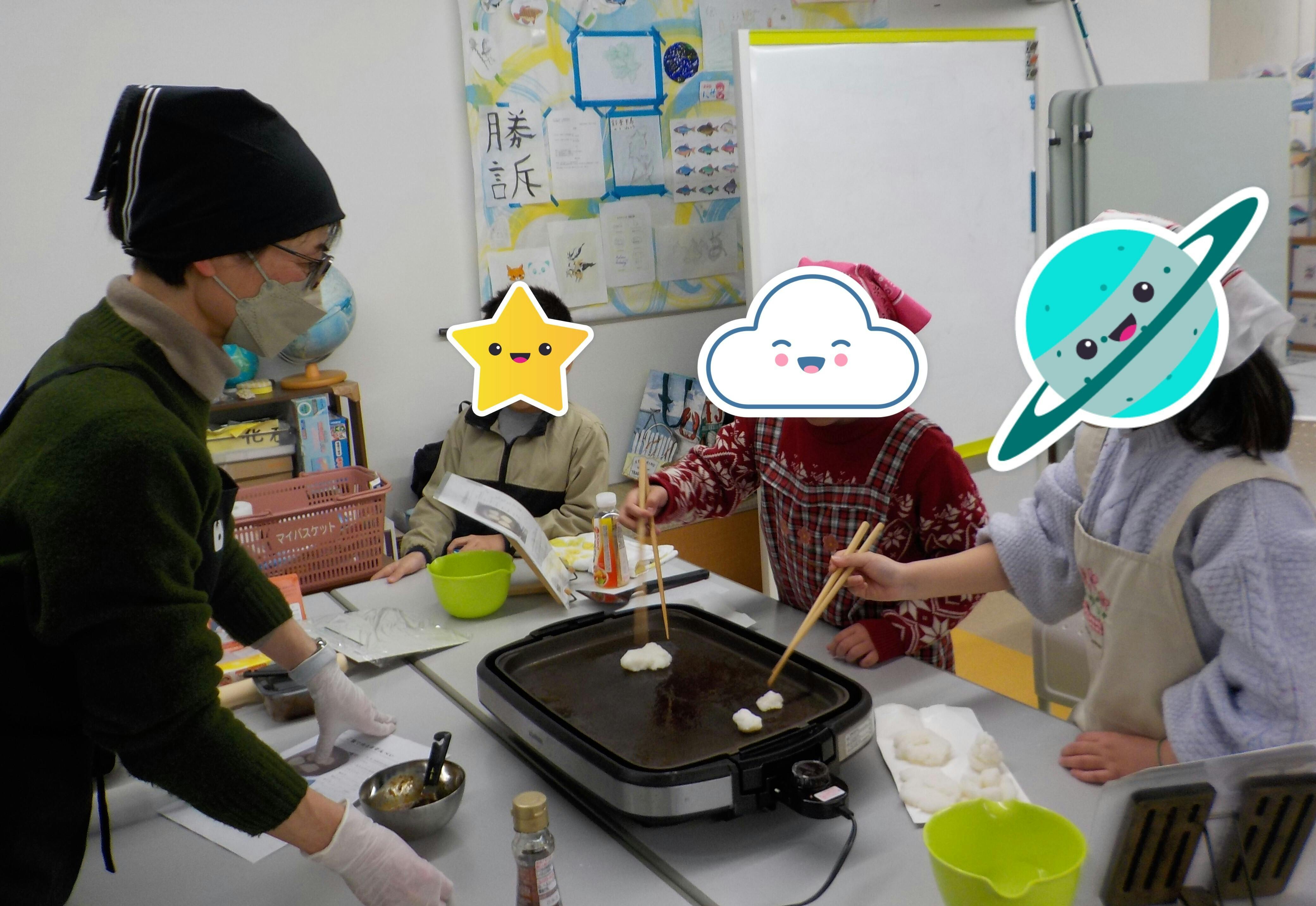 先日、水曜クラス(少人数クラス)で「お米を加工してお煎餅を作ろう」という調理活動を行いました。炊いたお米を成形し、焼き上げていくのですが、子どもたちの発想はとても柔軟です。丸い形だけでなく、花や星など、思い思いの形にアレンジしていました。