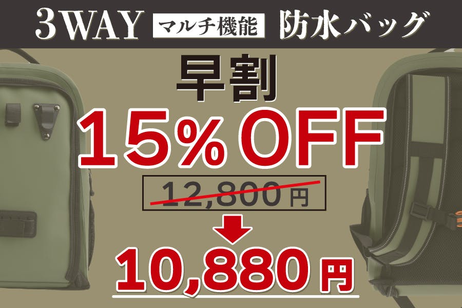 3WAYマルチ機能防水バッグ 販売予定定価 12,800円 を支援者様にお得なお値段で提供します。※このプロジェクトで取り扱うリターン品は自社ブランド『EZ Bike』の商品です。