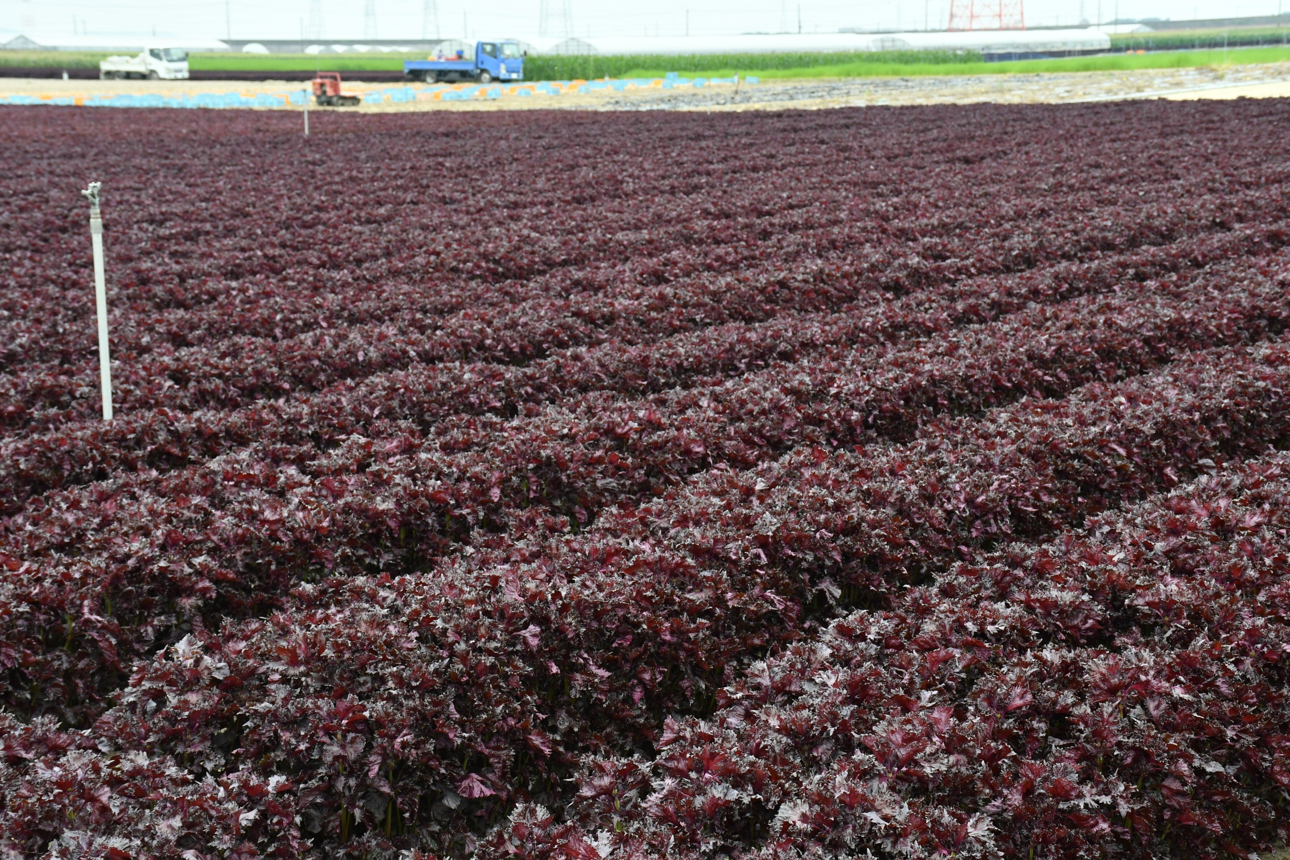 (一面に広がる碧南市の赤しそ畑)