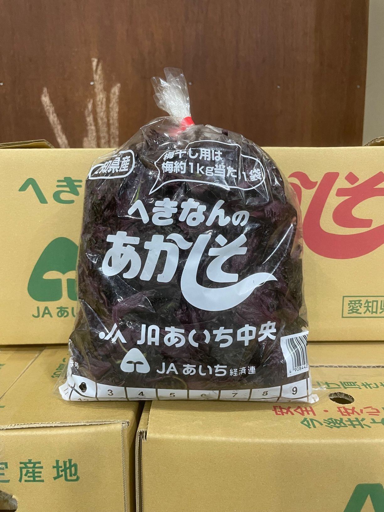 碧南市の赤しその収穫時期は5月下旬~7月上旬で、店頭で赤しそを見かける期間はその旬の期間のみ。