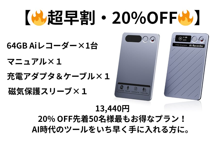この革新的なAIレコーダーをいち早く手にしていただくため、CAMPFIRE限定の特別なリターンをご用意しました。