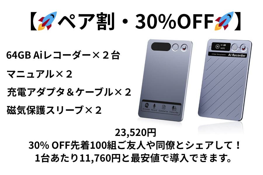 【🚀ペア割・30%OFF🚀】23,520円30% OFF先着100組ご友人や同僚とシェアして!1台あたり11,760円と最安値で導入できます。