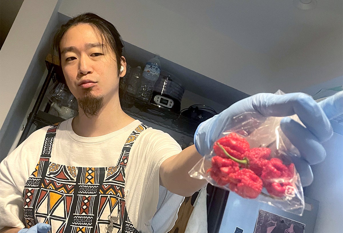 今年トライしたのはハラペーニョ、ハバネロに加え、トリニダード・スコッチボネット、ブート・ジョロキア、そしてモルガ・スコーピオン。